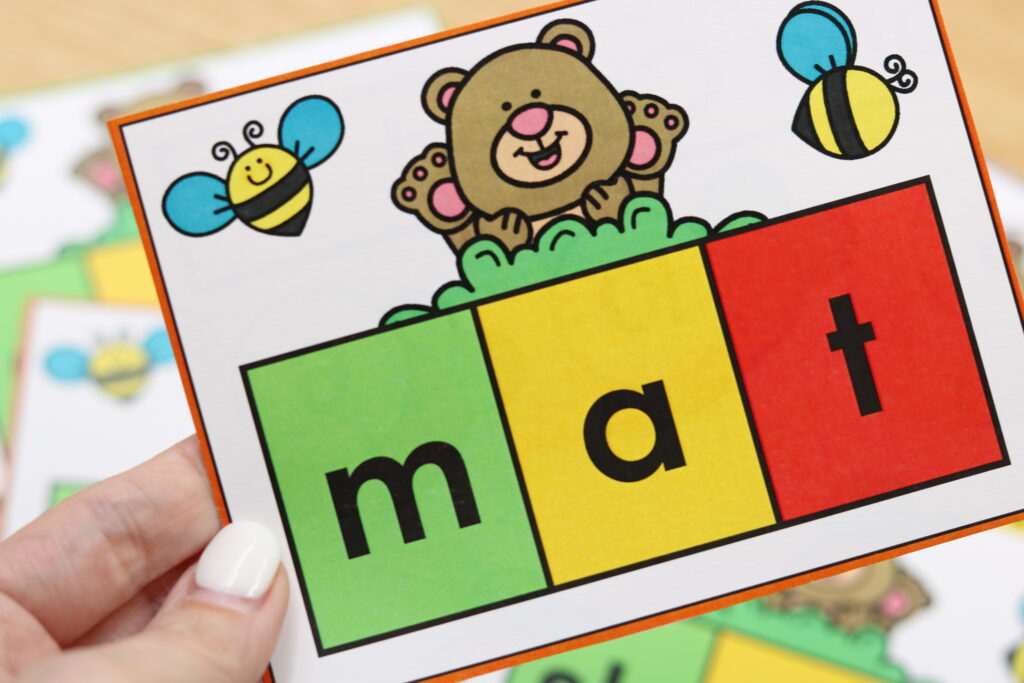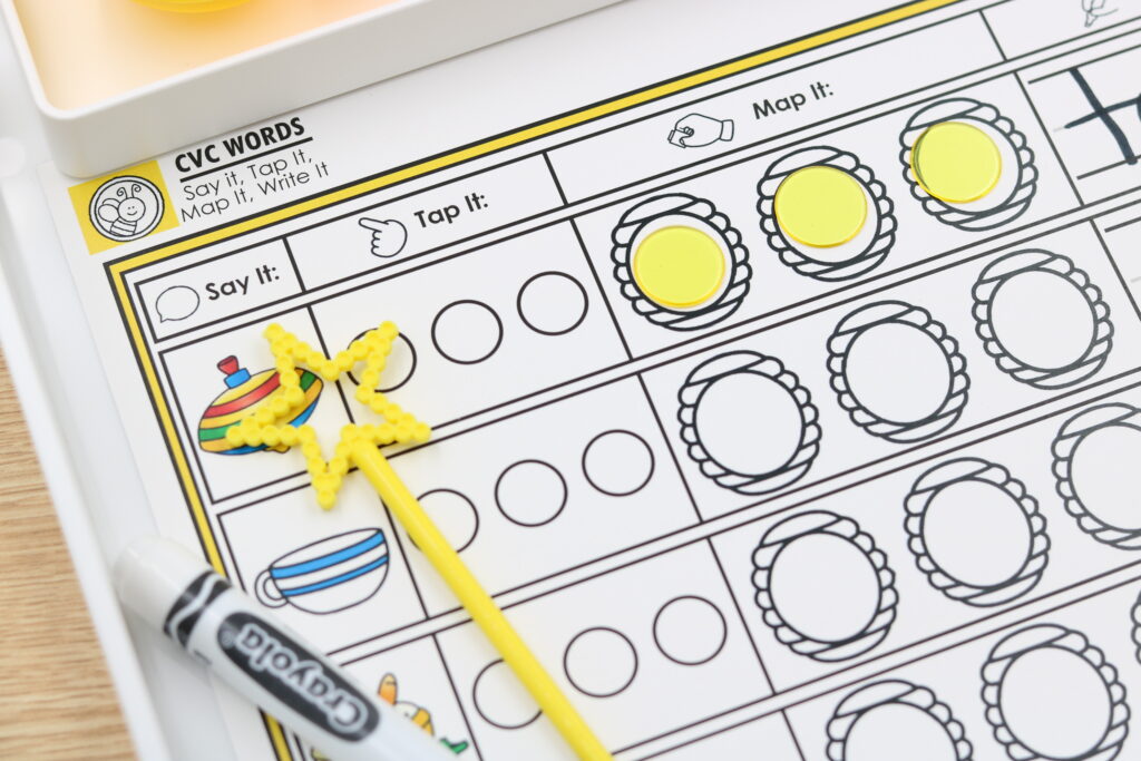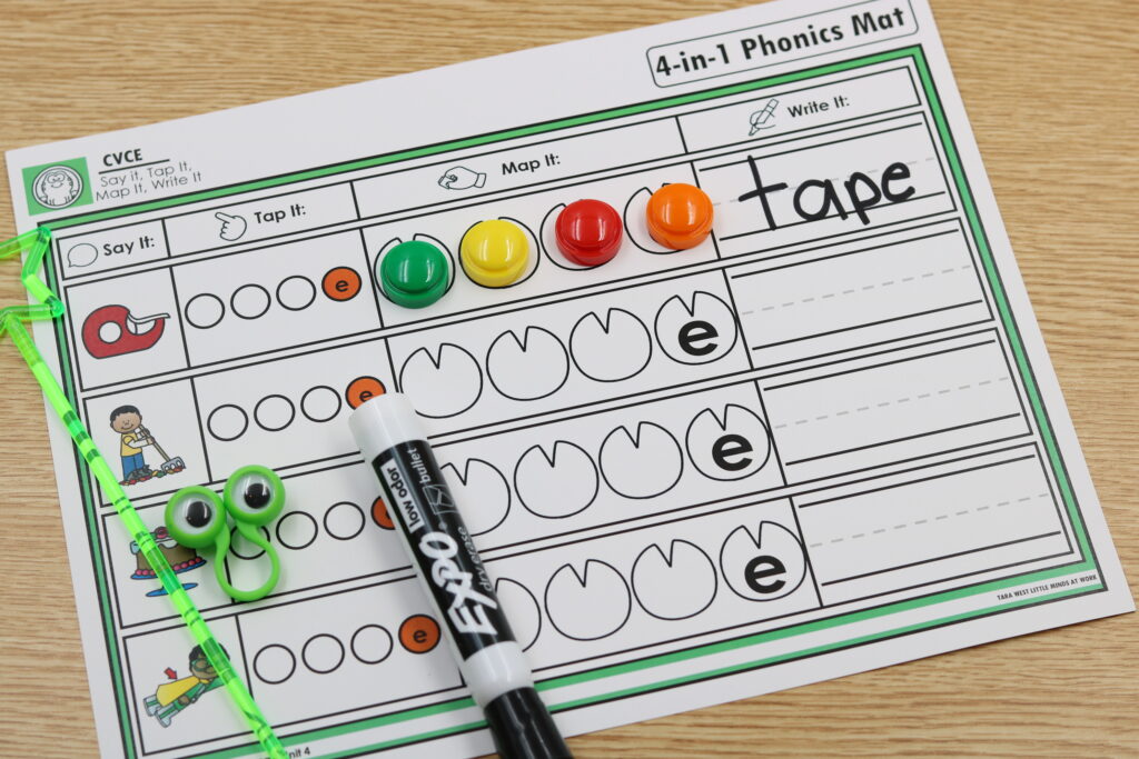 Do you utilize connecting phonemes to graphemes through word mapping in your classroom? These free April-themed all-in-on phonics mats will encourage your students to say, tap, map, and write the phonics skill words.
