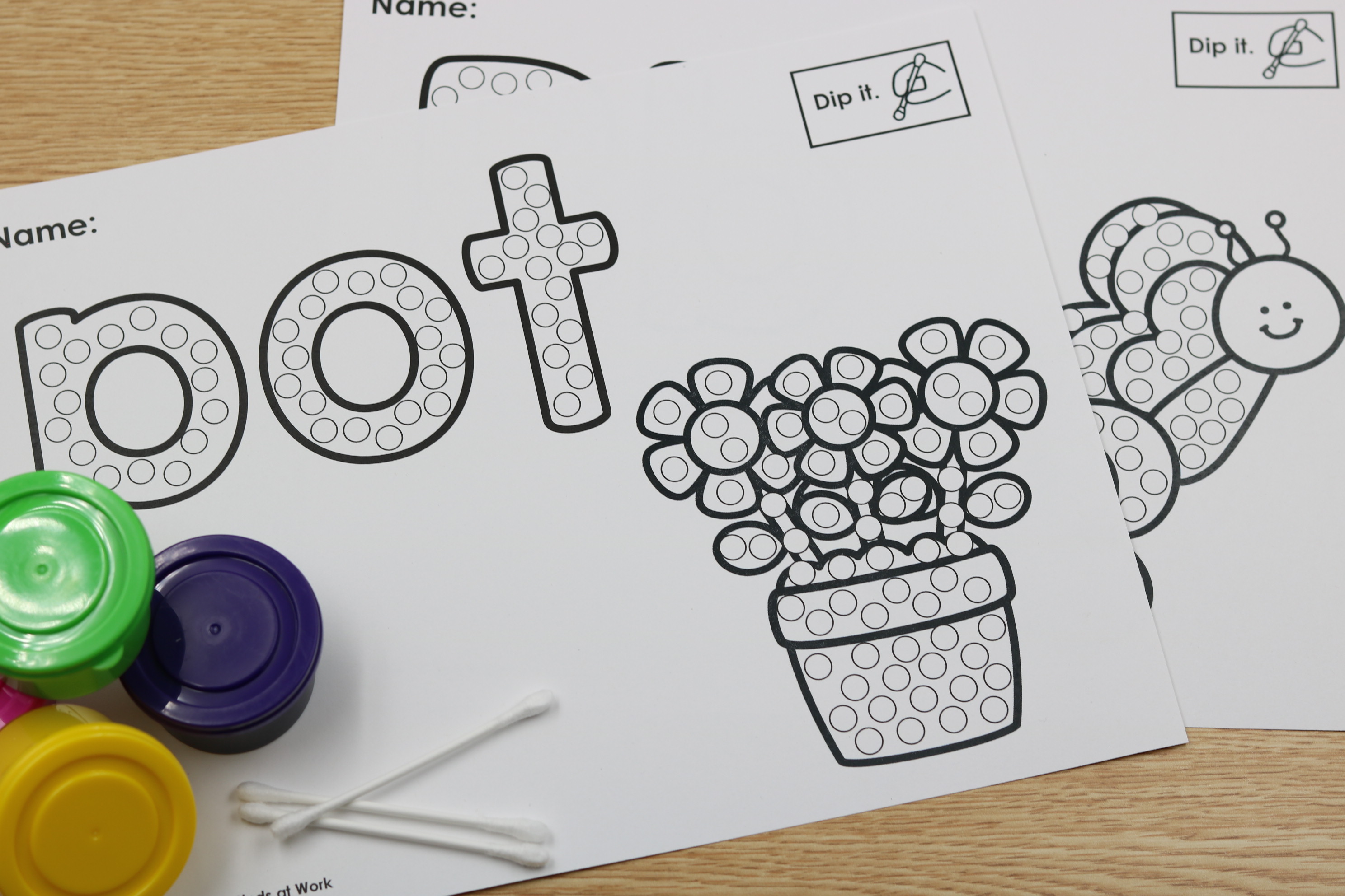• Spring themed dip and dot activity pages