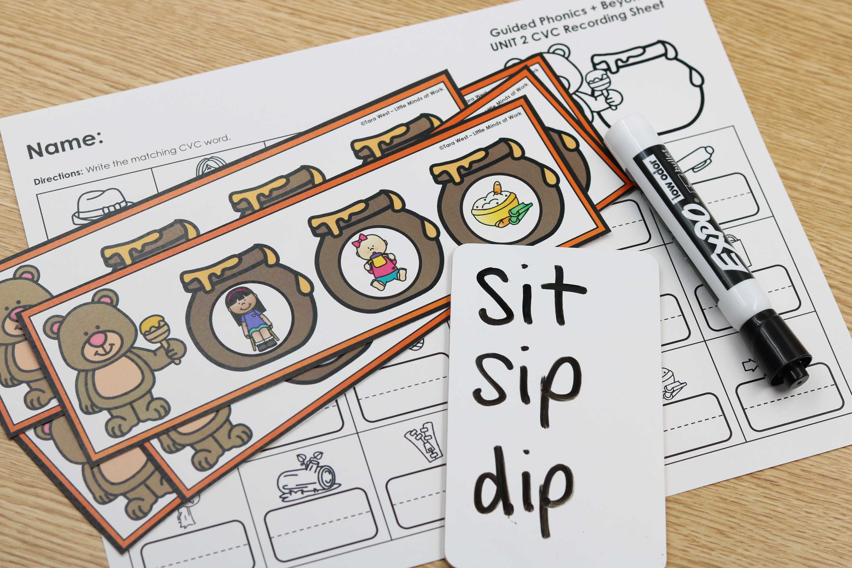 • Student-friendly phonics activity strips