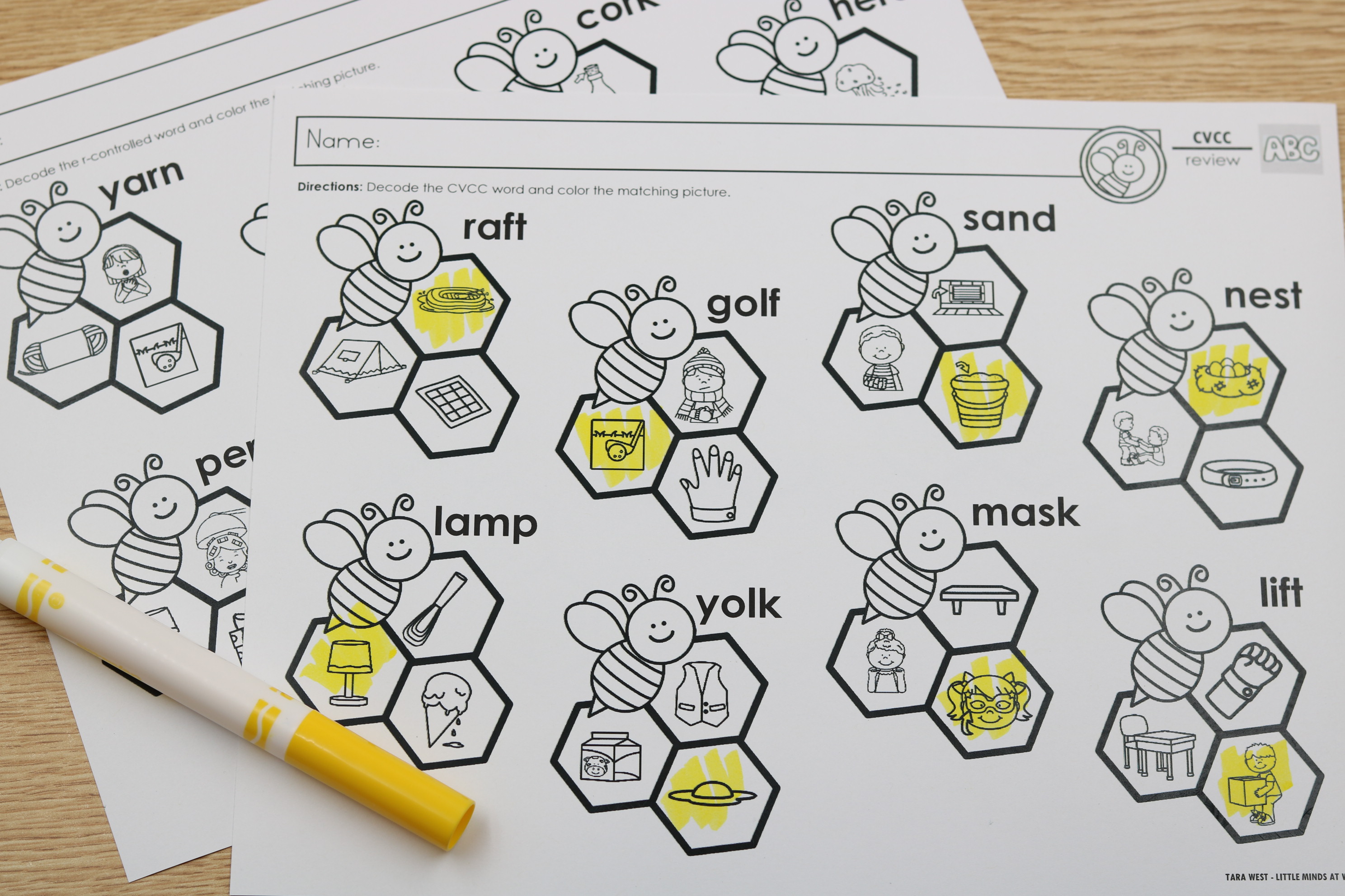With 50 engaging printables included, students practice key phonics skills such as ABC recognition, CVC words, digraphs, and CVCe patterns, CVCC words, r-controlled, vowel variants, counting sets, addition, and subtraction while also building number sense through counting sets. This variety allows for meaningful review and reinforcement across multiple foundational skills.