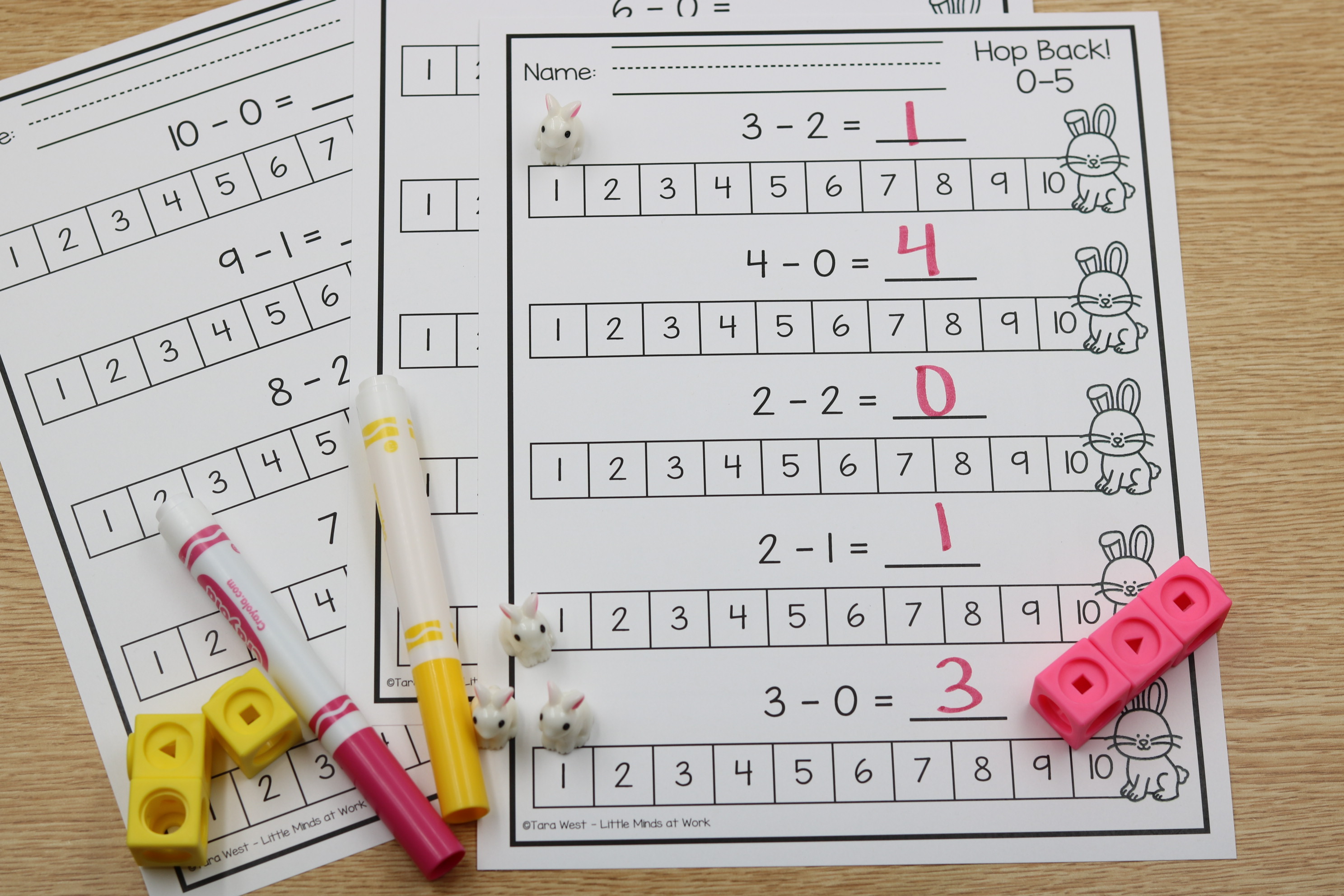 • Bunny hop number line subtraction pages (within 5 and 10)