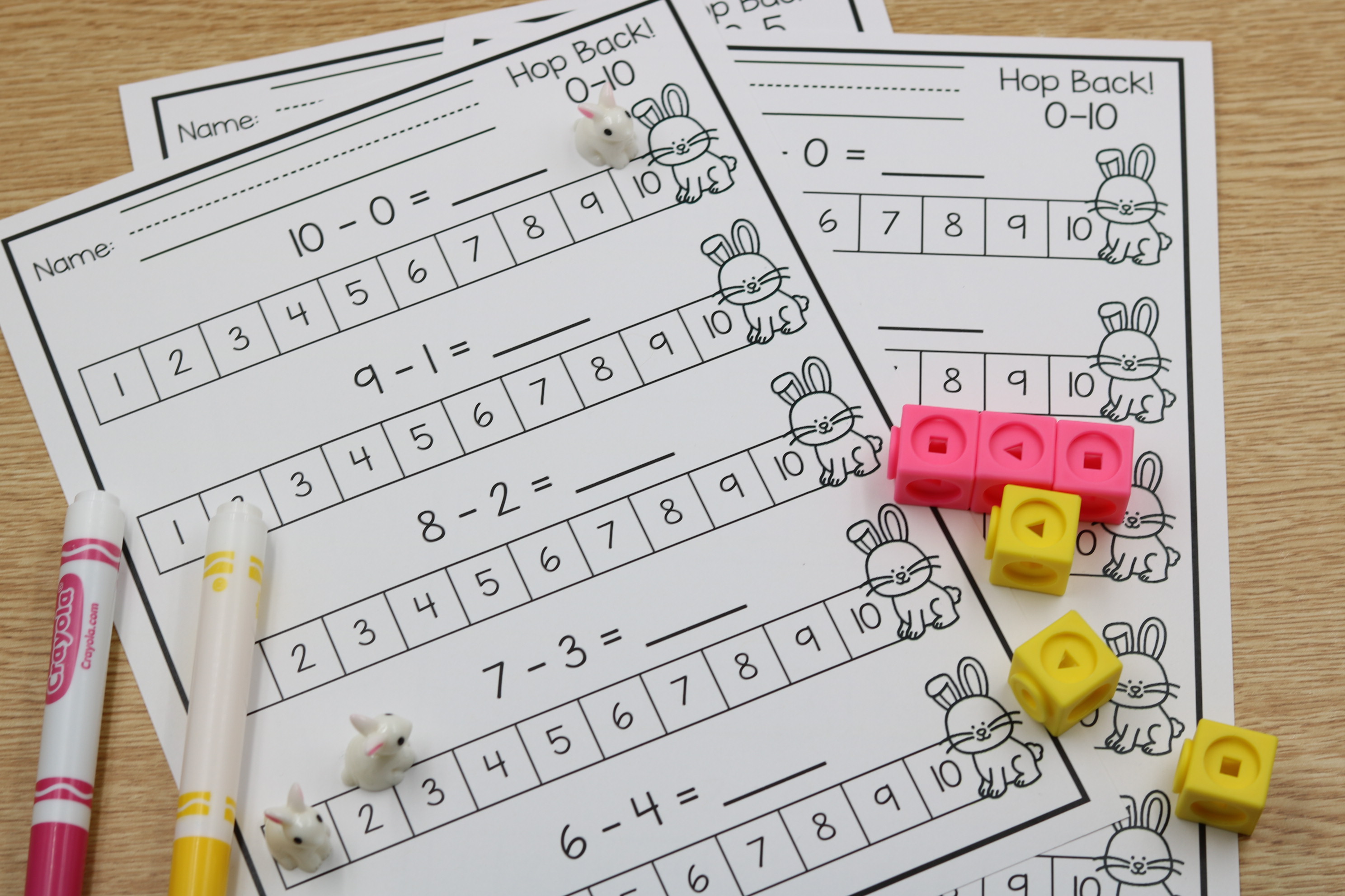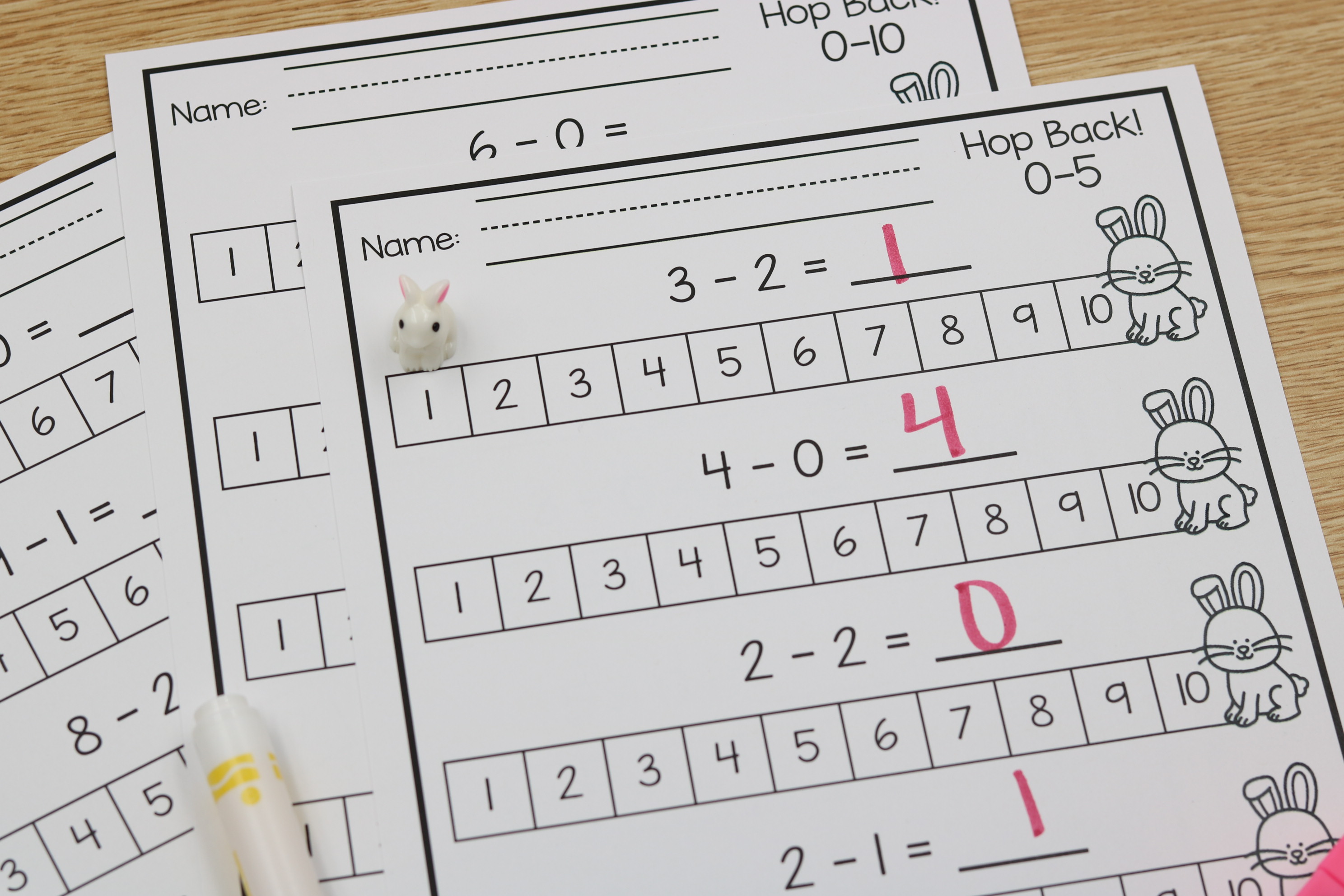 These April subtraction bunny hop printables freebie provide engaging number line practice to help students build subtraction fluency, strengthen counting back strategies, and develop strong number sense.