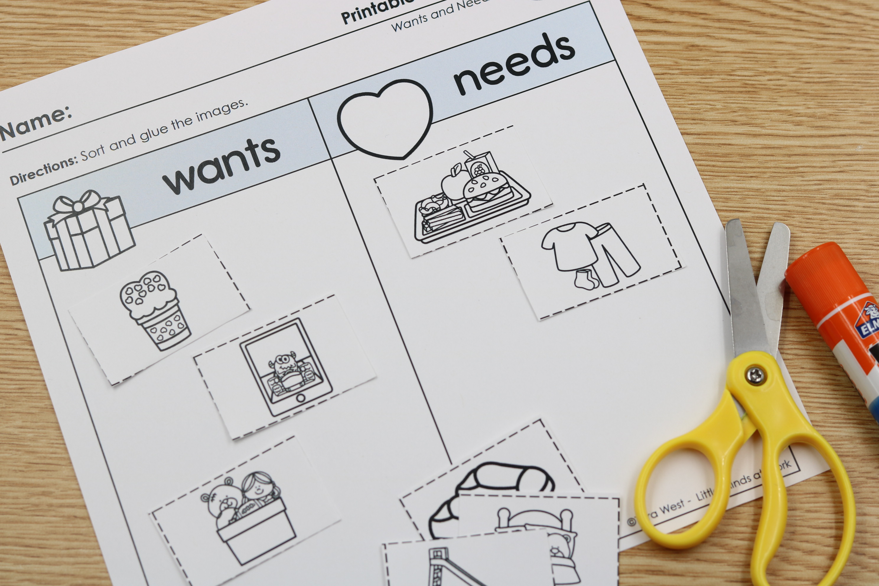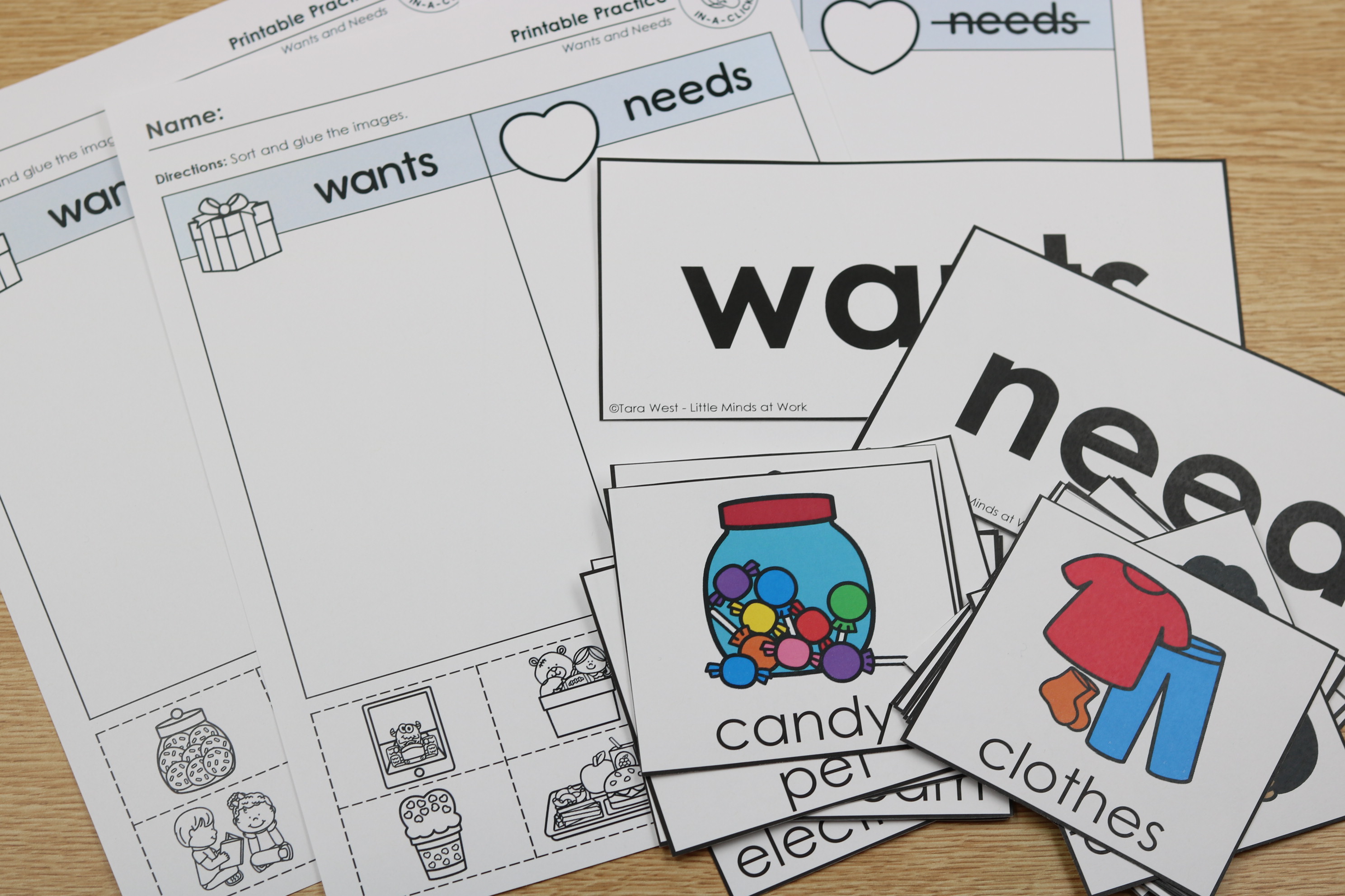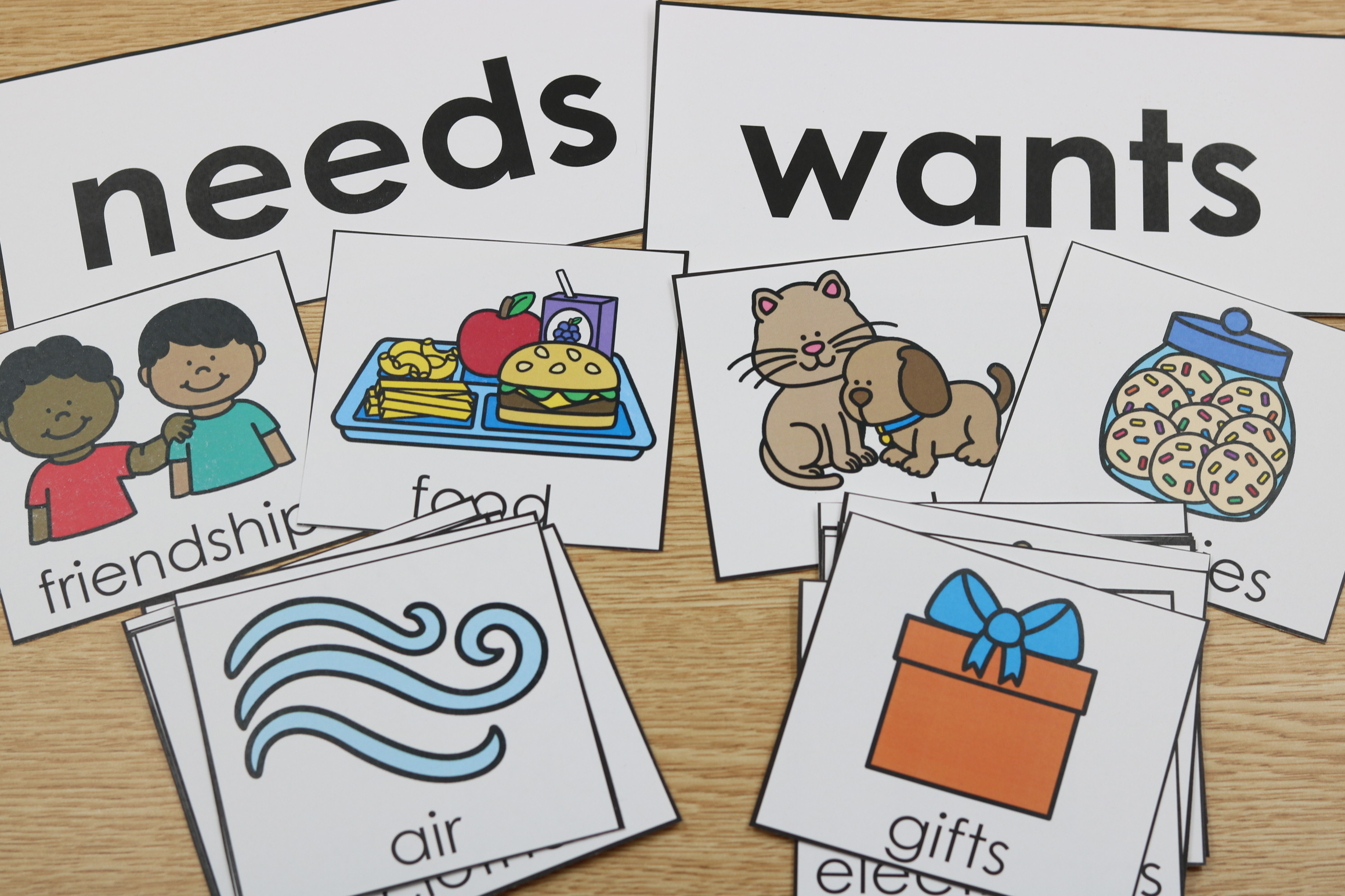 Download these needs vs wants sorting cards and printable worksheets to help students understand basic economics through hands-on categorizing activities.