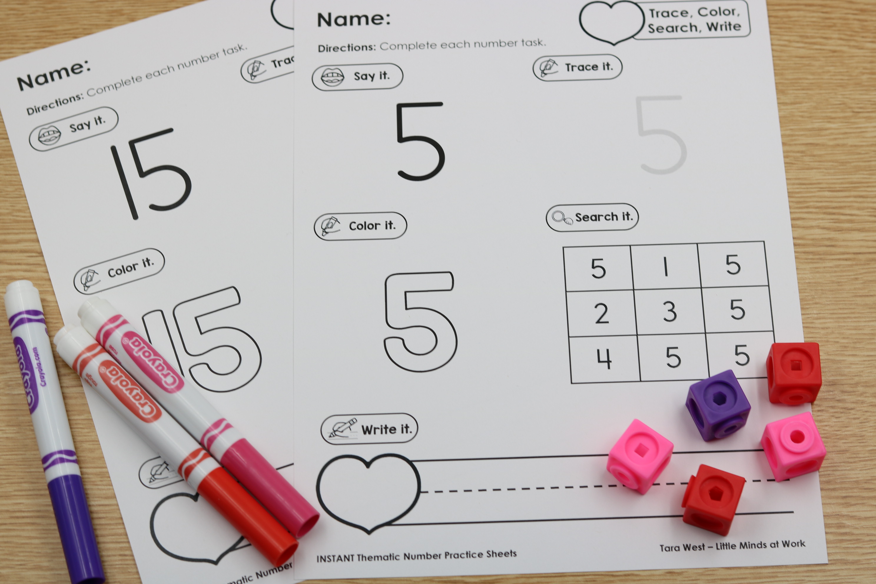 The Valentine’s Day theme adds seasonal engagement while keeping the focus on foundational math handwriting skills. These printables are ideal for daily number practice and work well across a variety of February classroom routines.