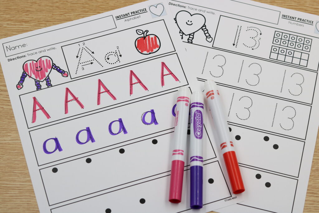 The Valentine theme keeps practice engaging while still focusing on proper letter and number formation. These pages work well for consistent daily practice and help build confidence with foundational handwriting skills throughout February.