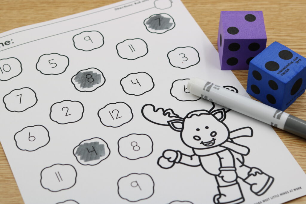 This winter roll and cover math mats free download helps students practice counting, number recognition, and number sense using dot cubes. Perfect for winter math centers, small groups, and independent practice.
