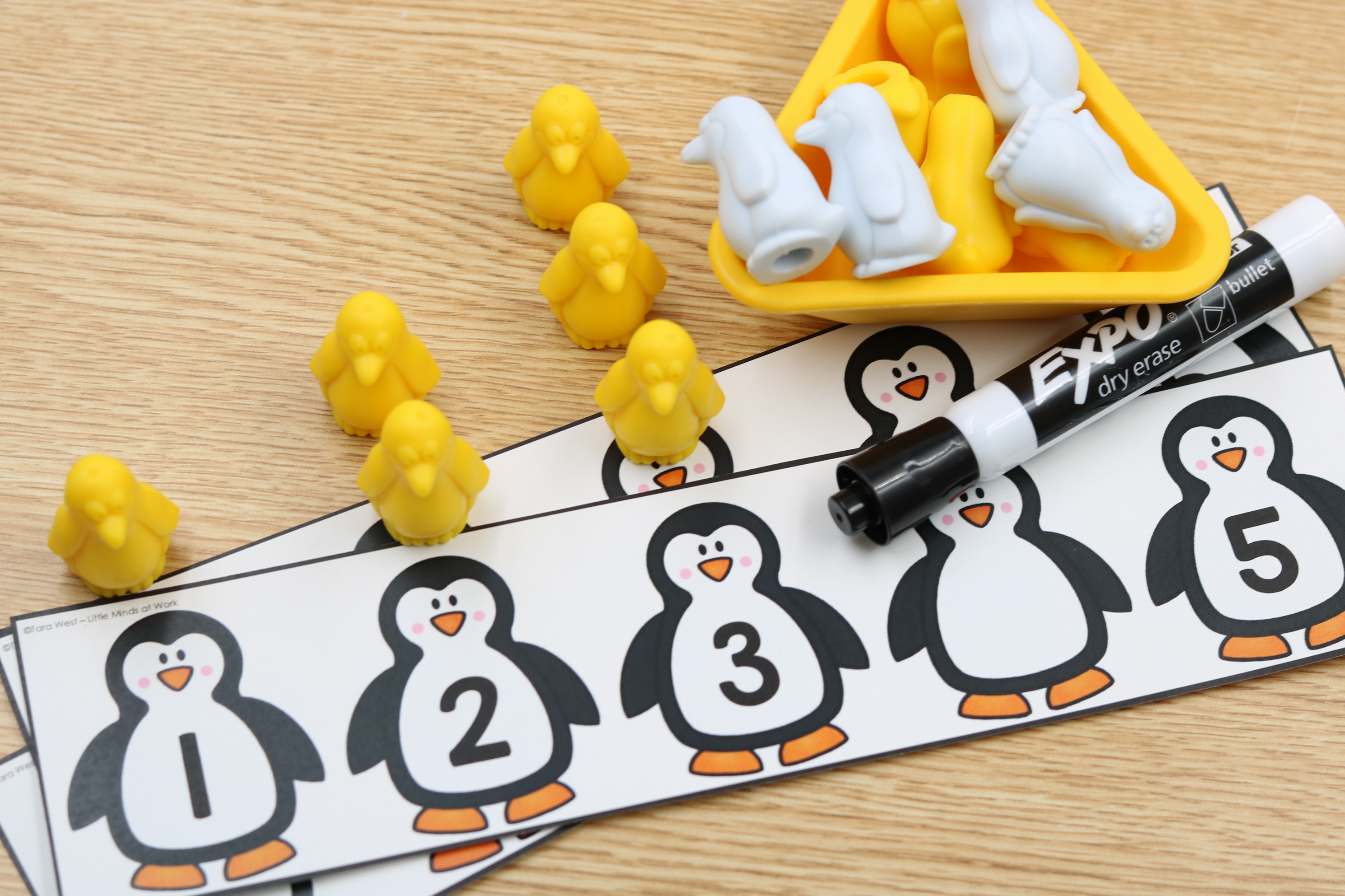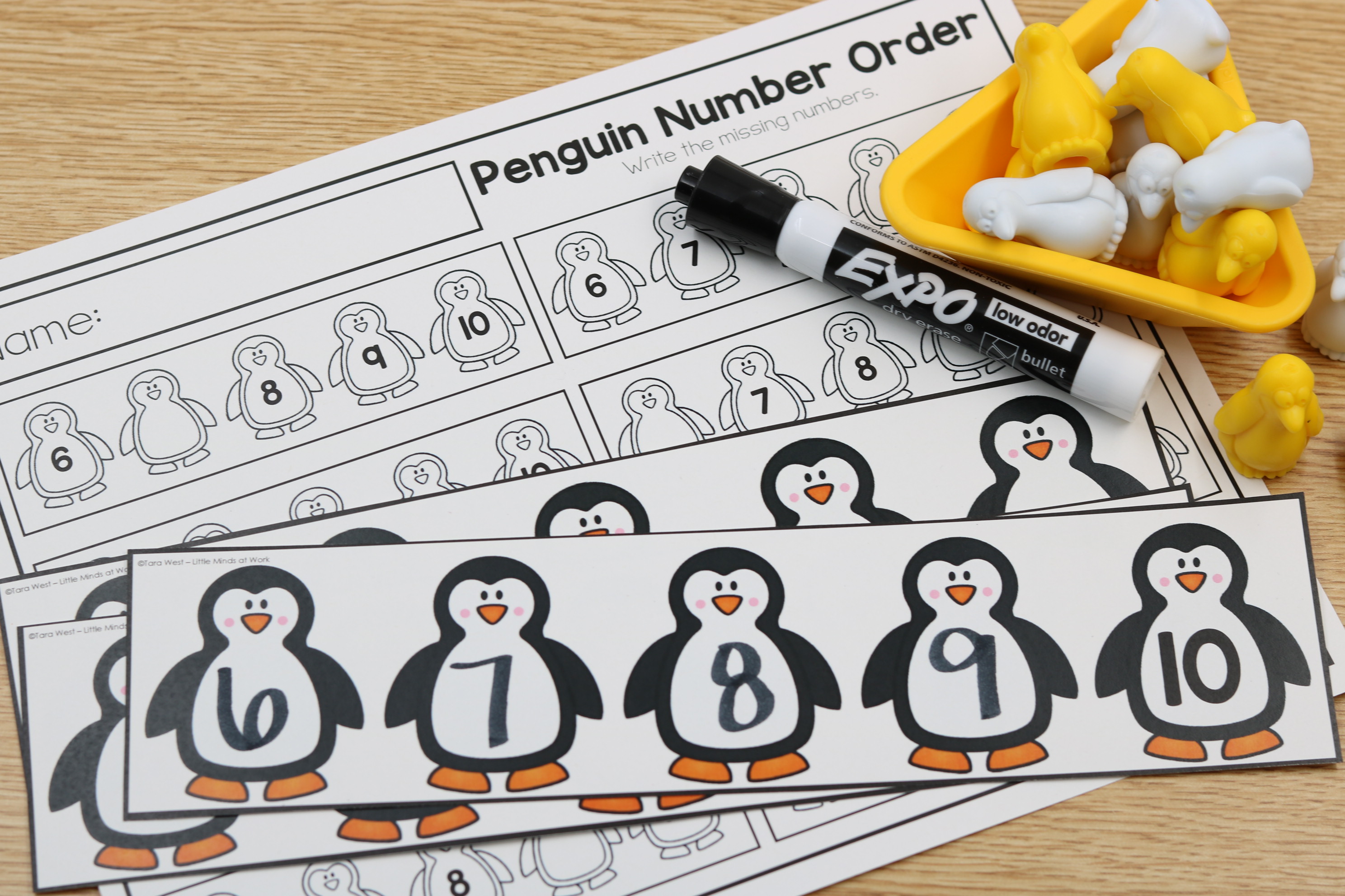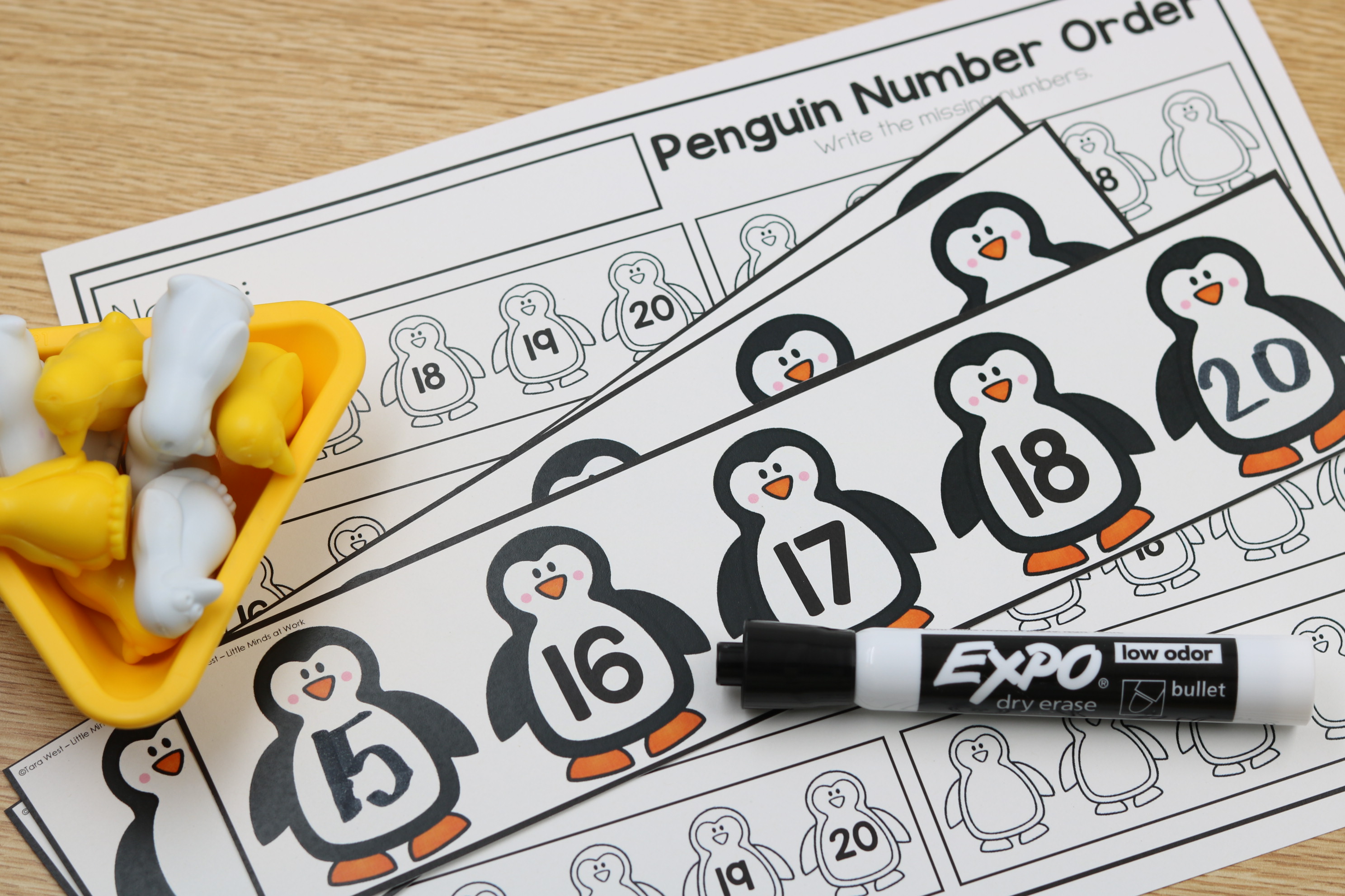 This penguin math centers free download includes engaging, hands-on activities to build number sense and number recognition to 20. Perfect for winter math centers, small groups, and independent practice.