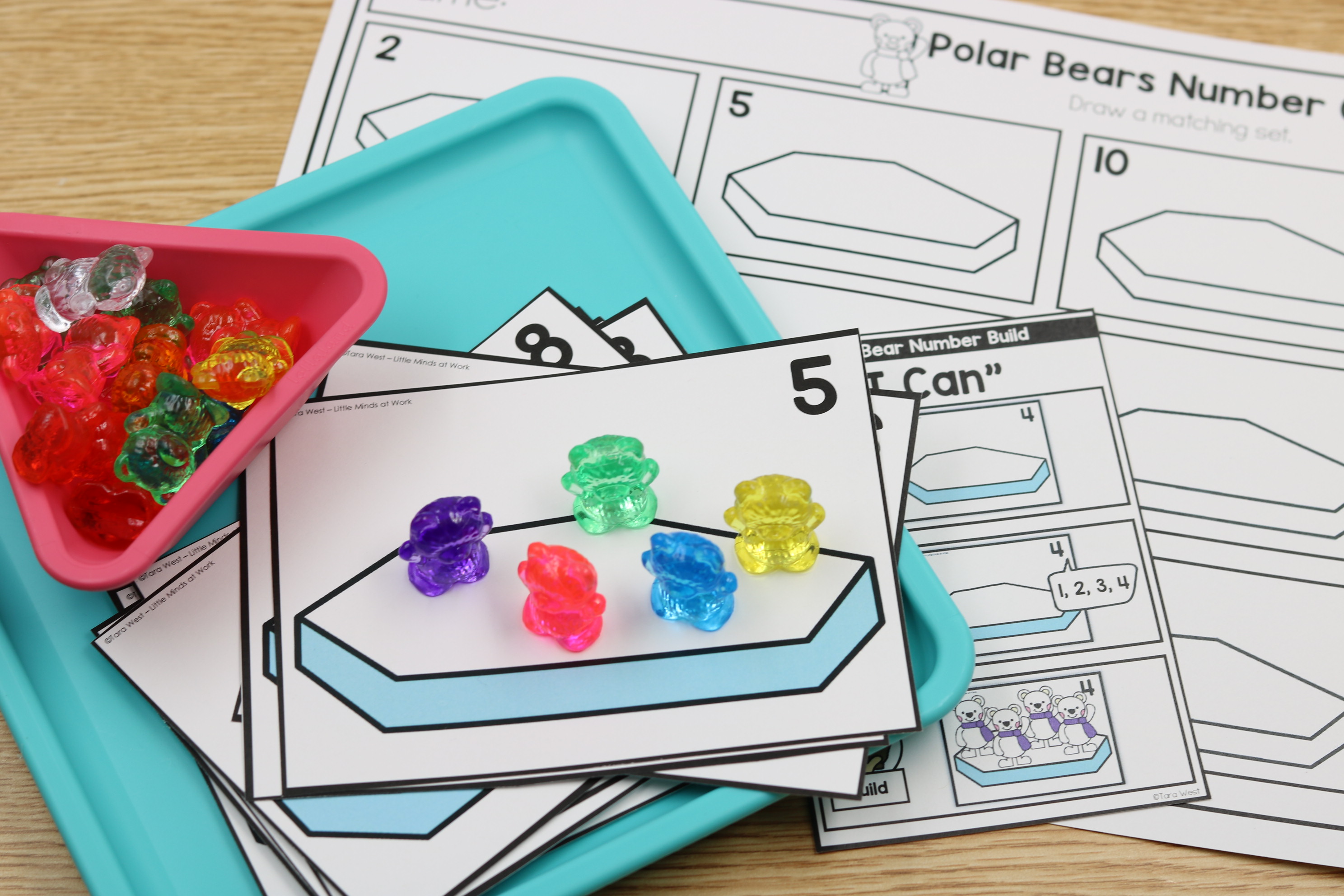 Download these January polar bear math centers for hands-on number order and number building practice. Perfect for centers, small groups, and morning tubs.