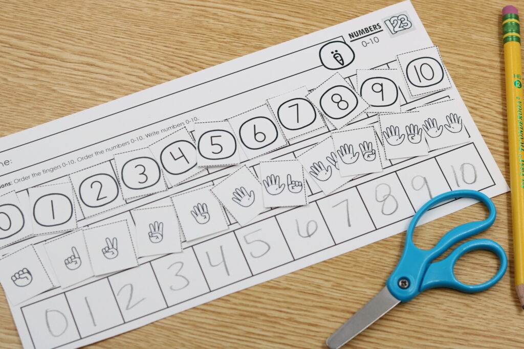 • Number line-up cut and paste worksheets
