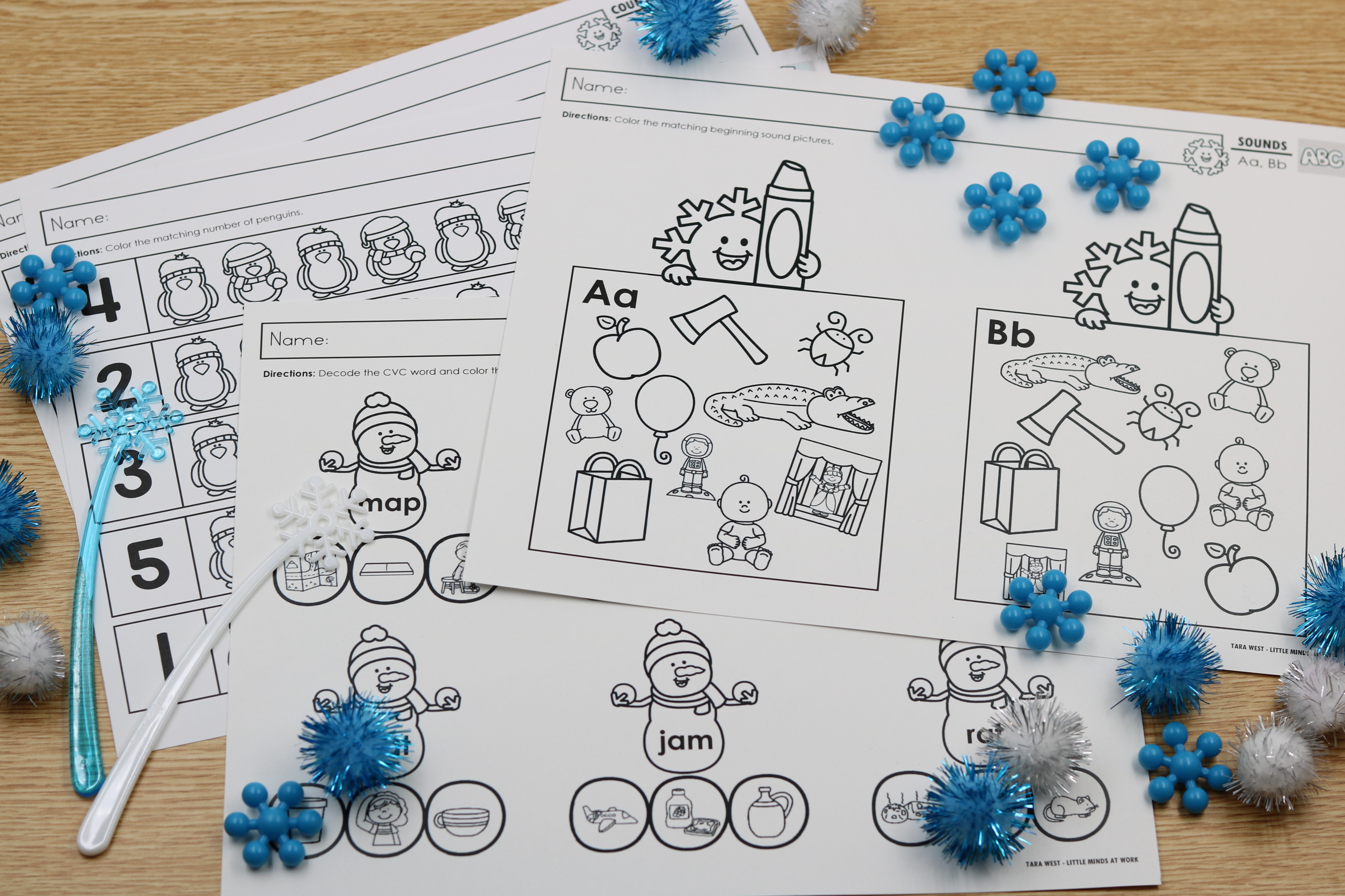 This January phonics and math printable practice sheets free download includes engaging worksheets for alphabet sounds, CVC words, digraphs, CVCe words, and number sense to 20. Perfect for centers, small groups, and independent practice all month long.