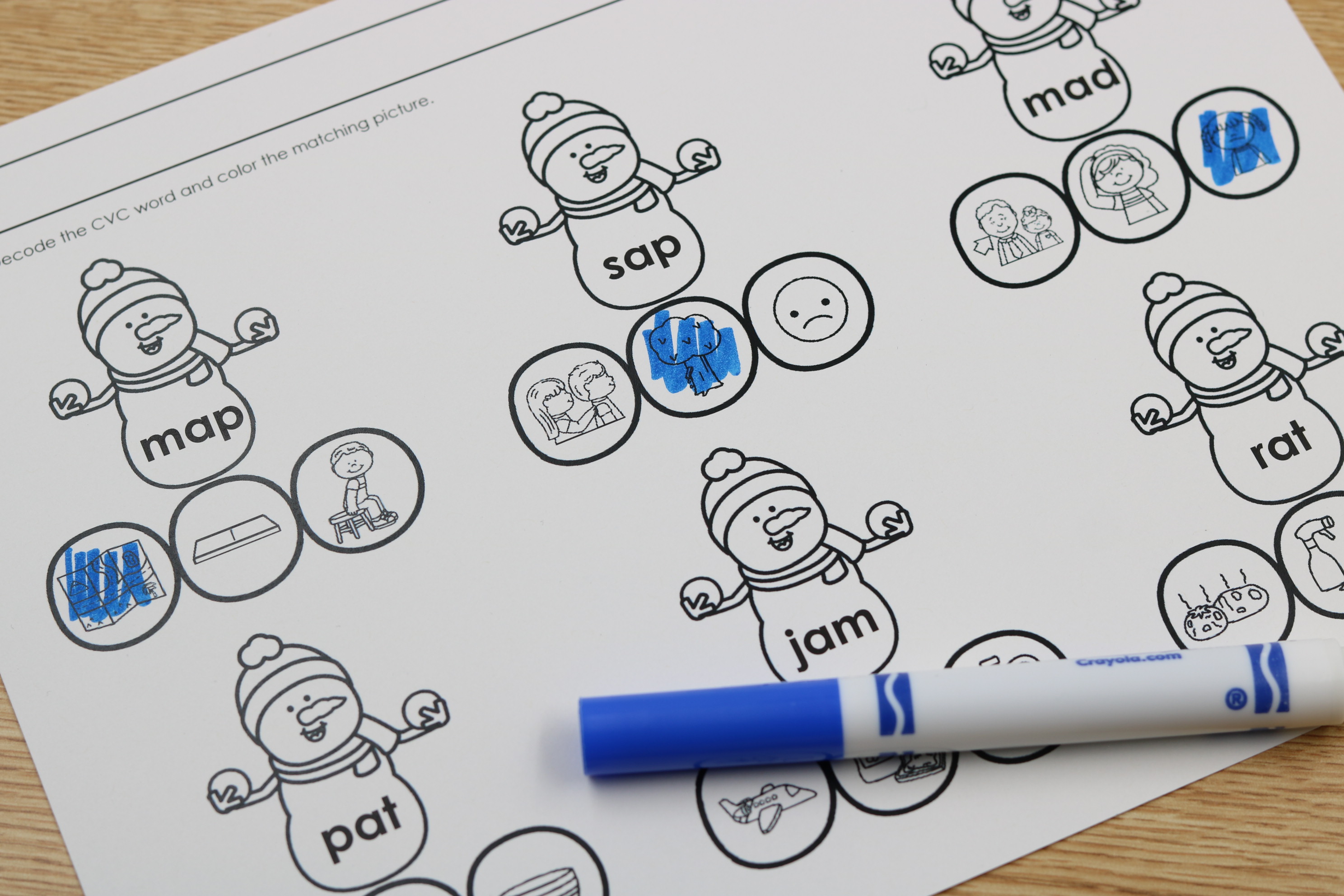 • CVC word decoding and picture matching sheets
