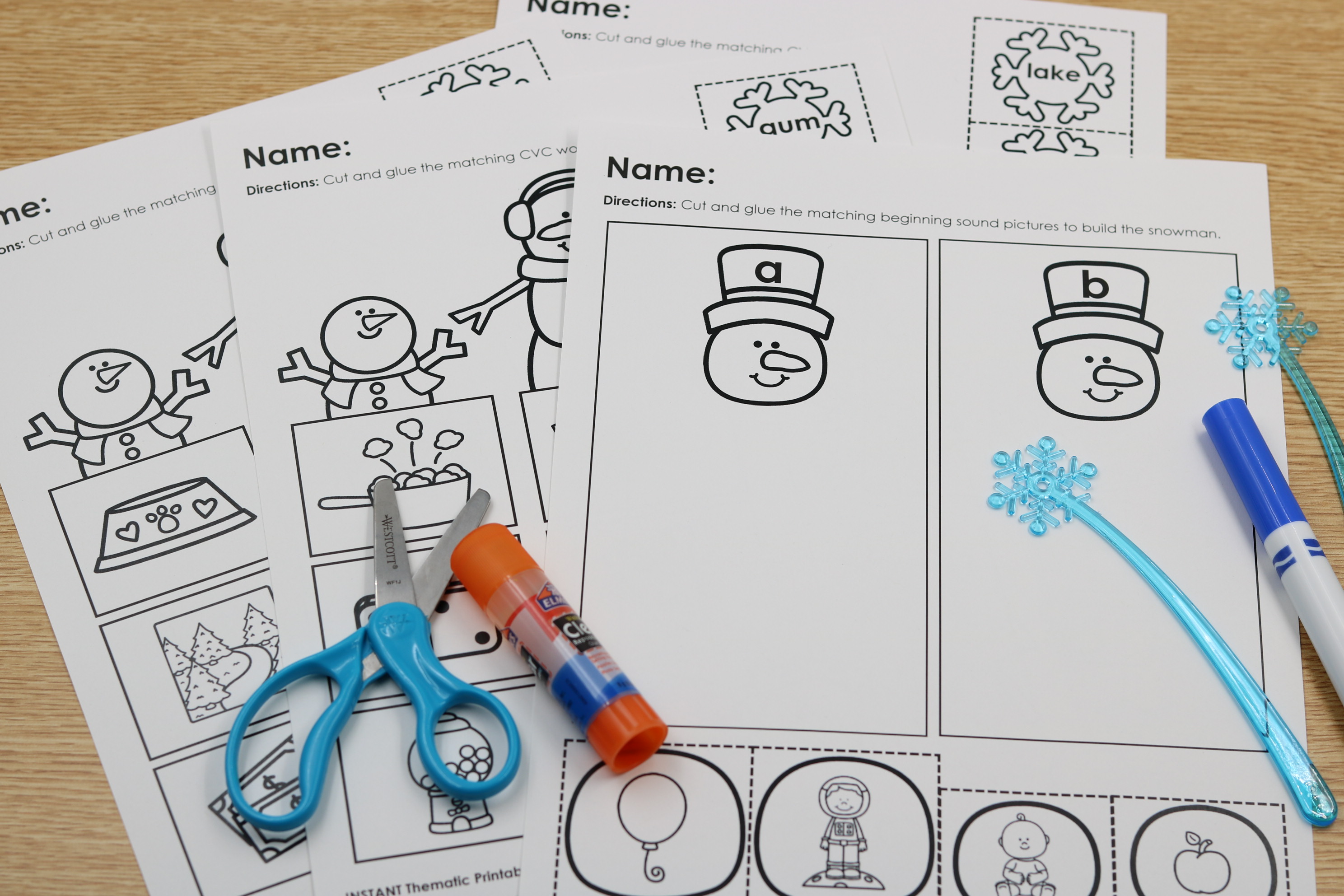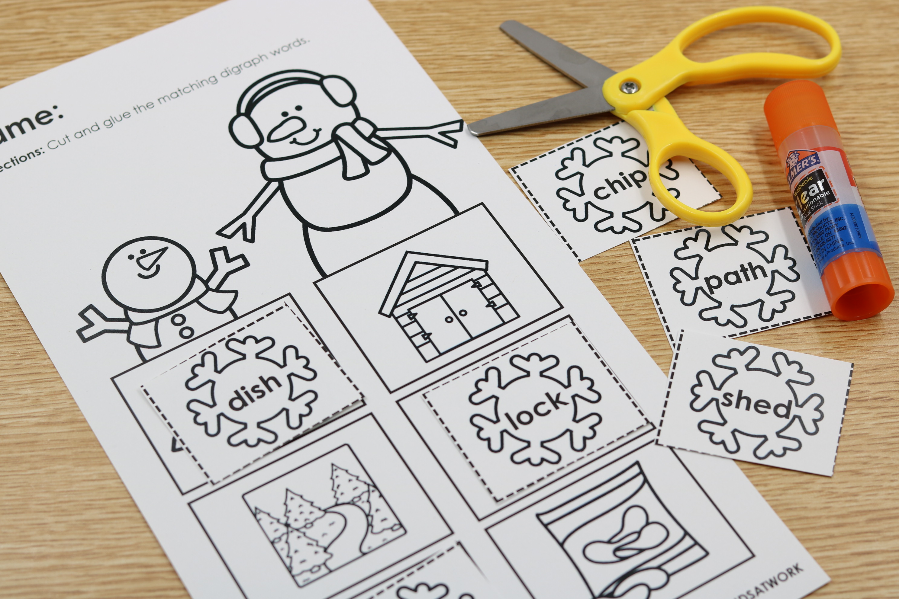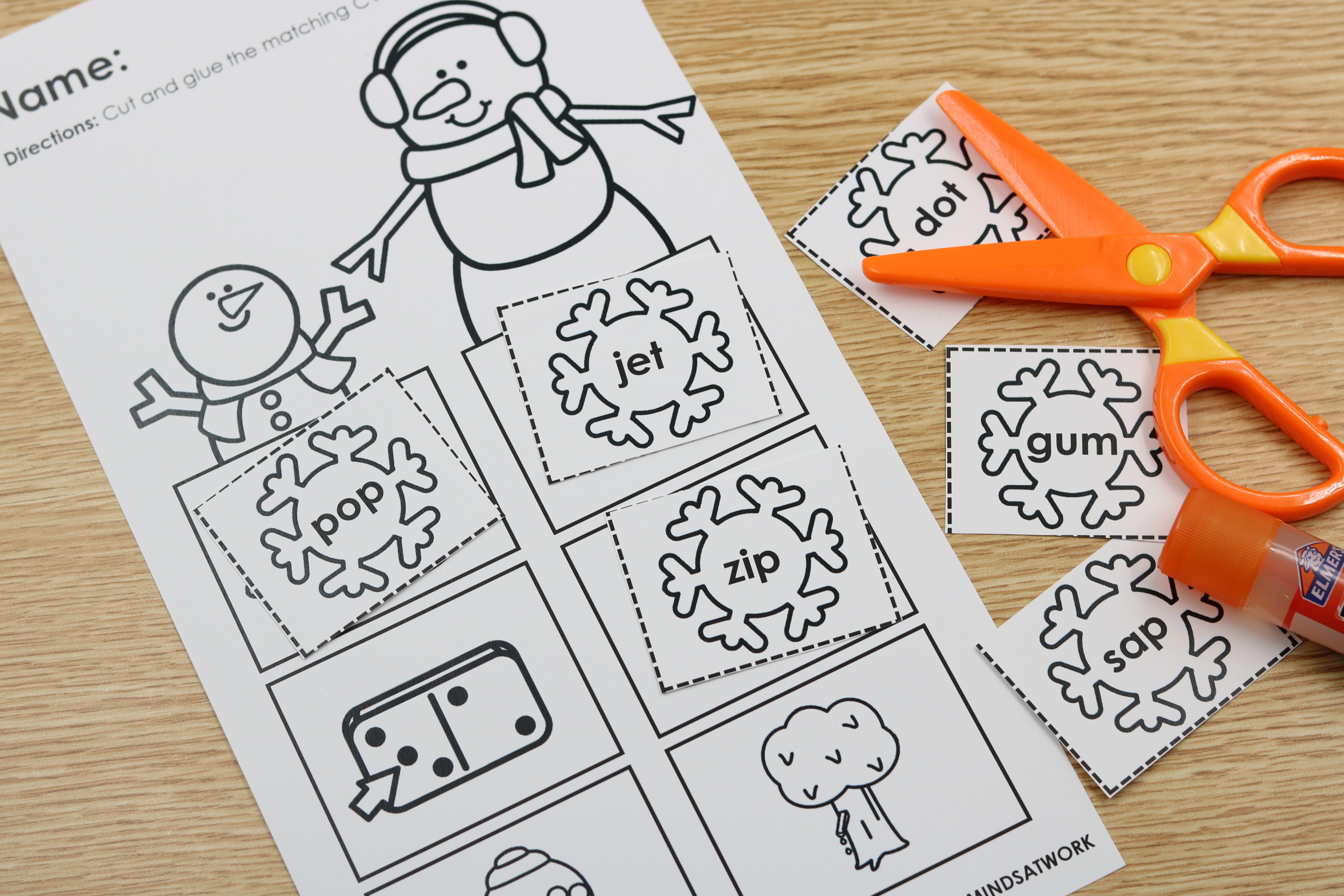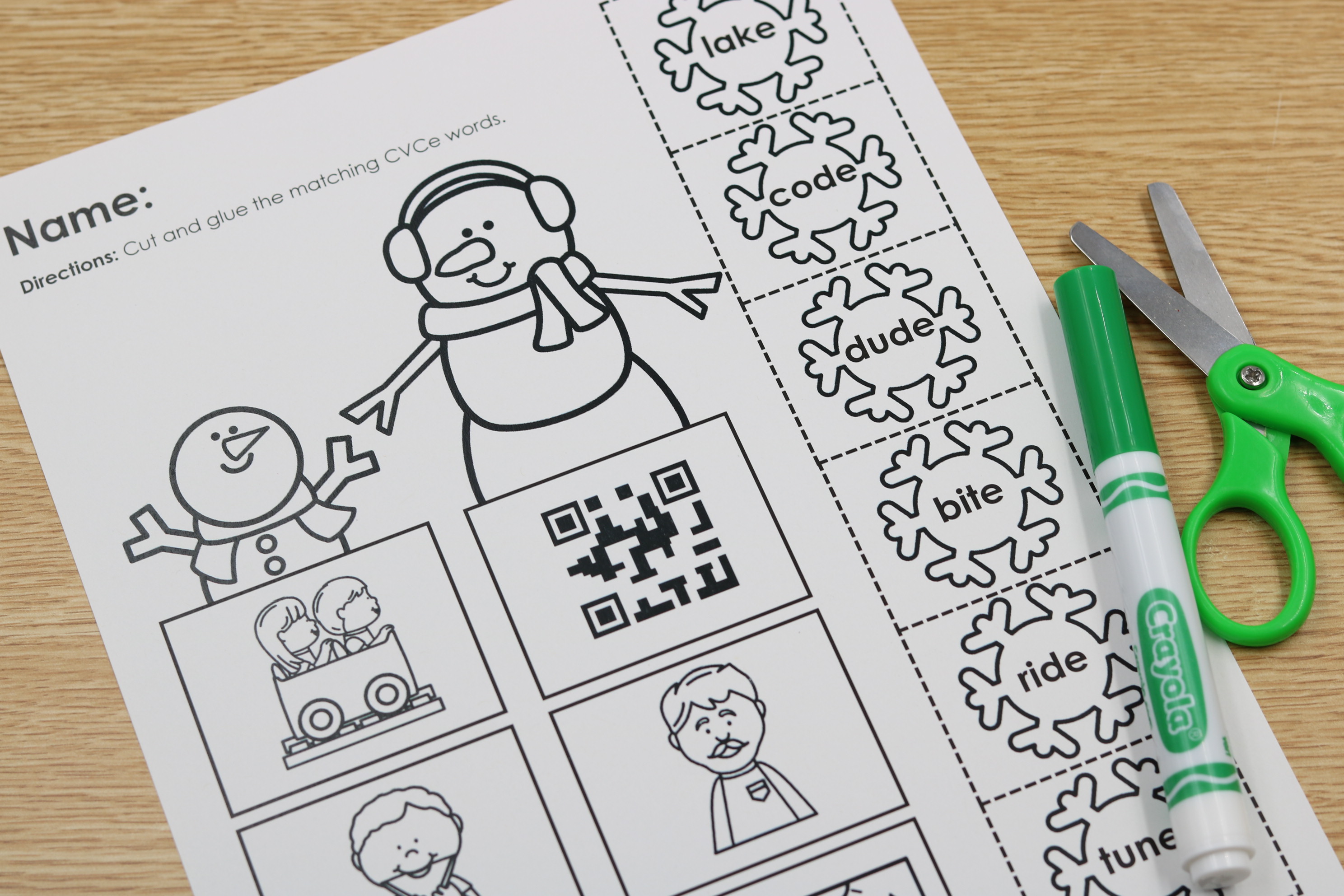 • CVCe word cut-and-glue activities