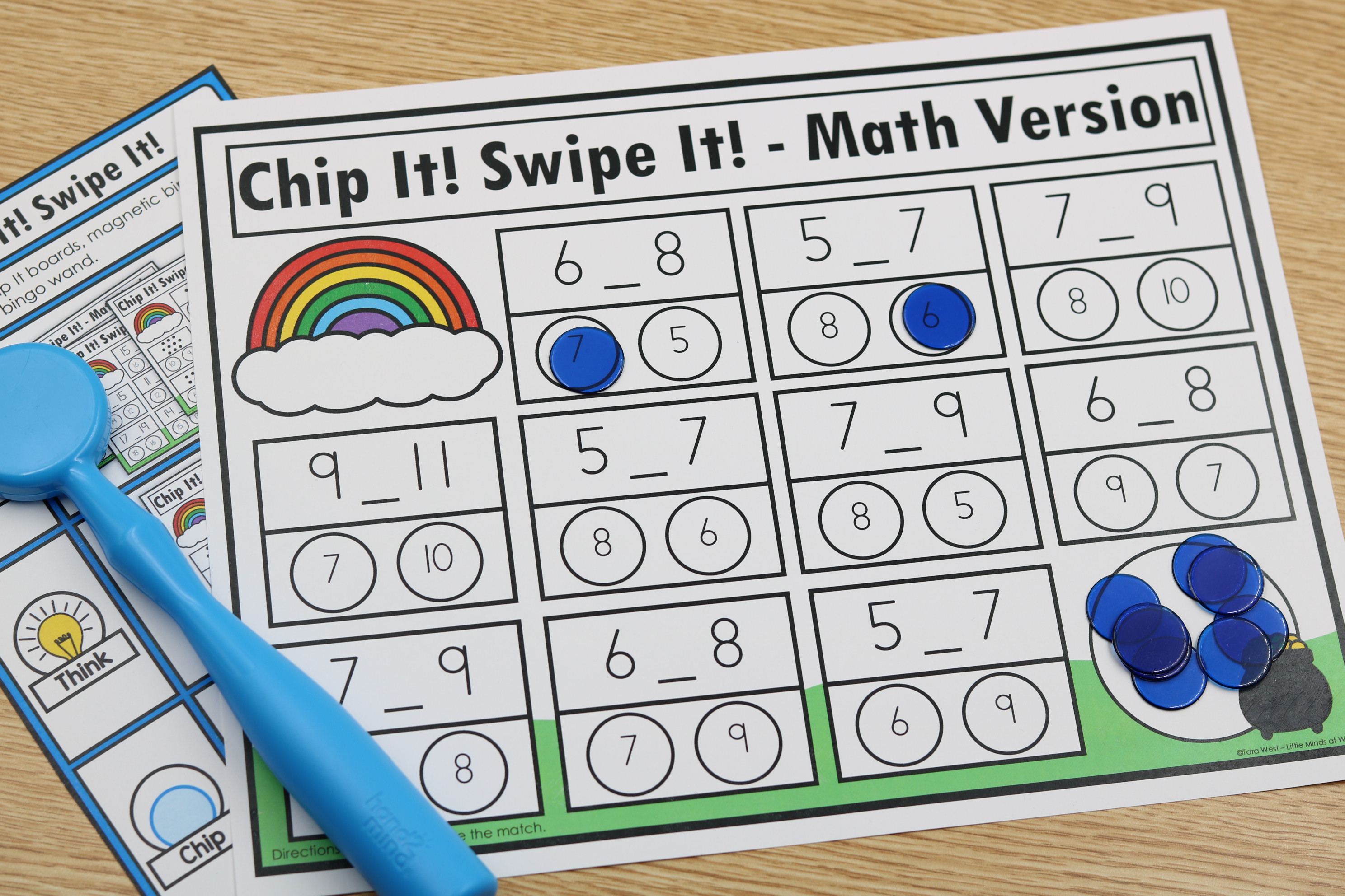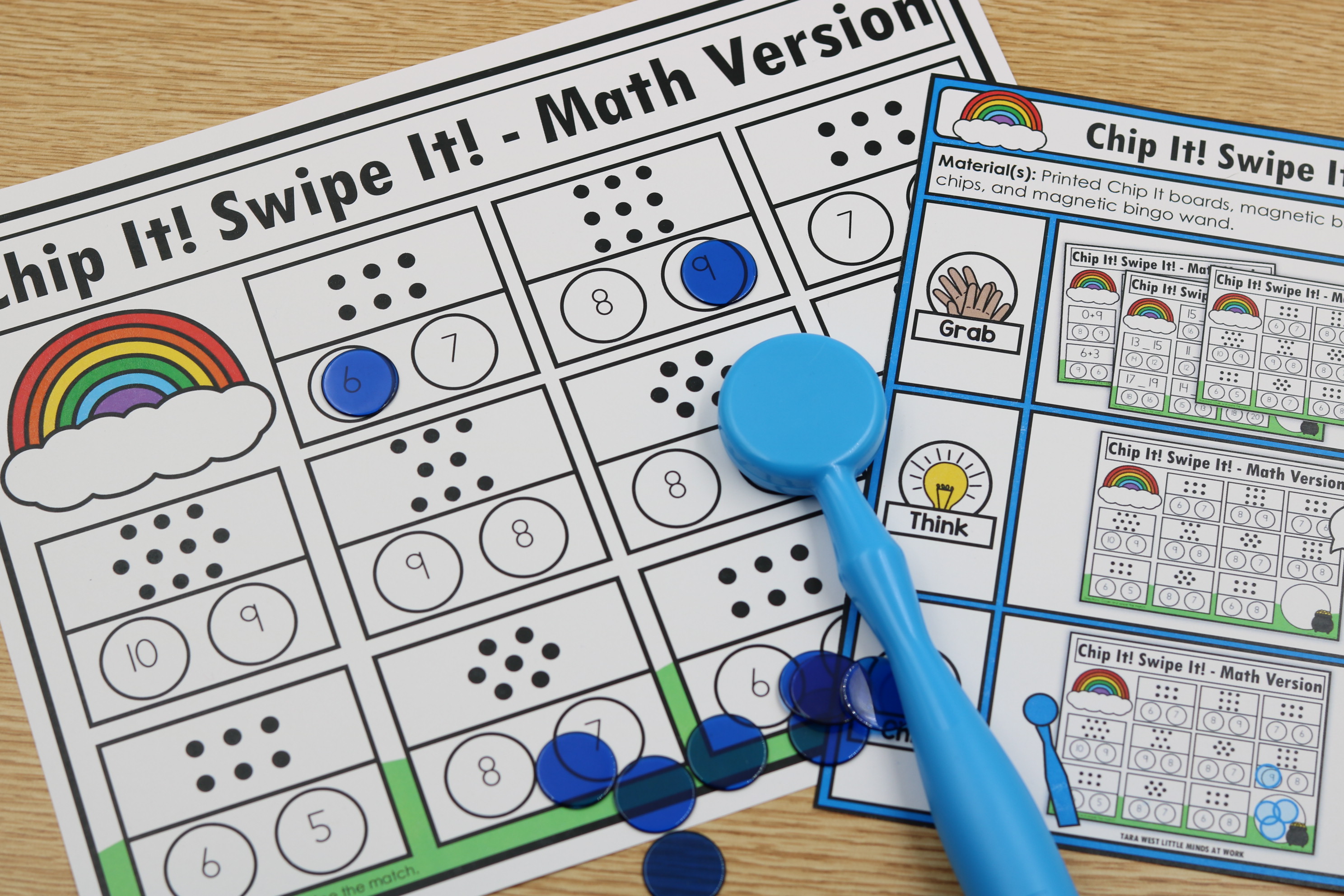 These March Math Chip and Swipe Mats provide an engaging rainbow themed way for students to practice key number sense and early math skills during small groups or independent math centers. Students cover the correct answer with a magnetic chip. Once the mat is complete, they swipe the mat clean using a magnetic wand for quick and motivating review.