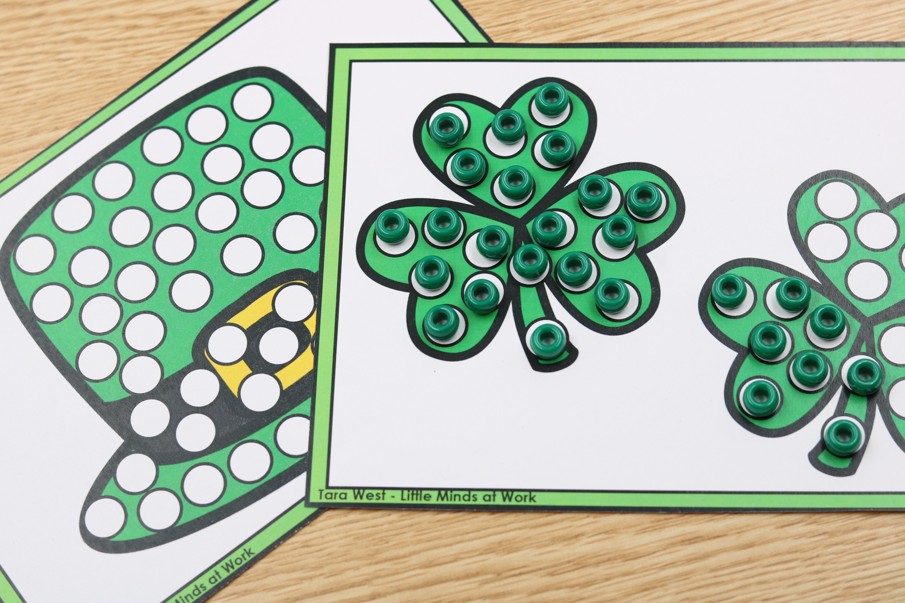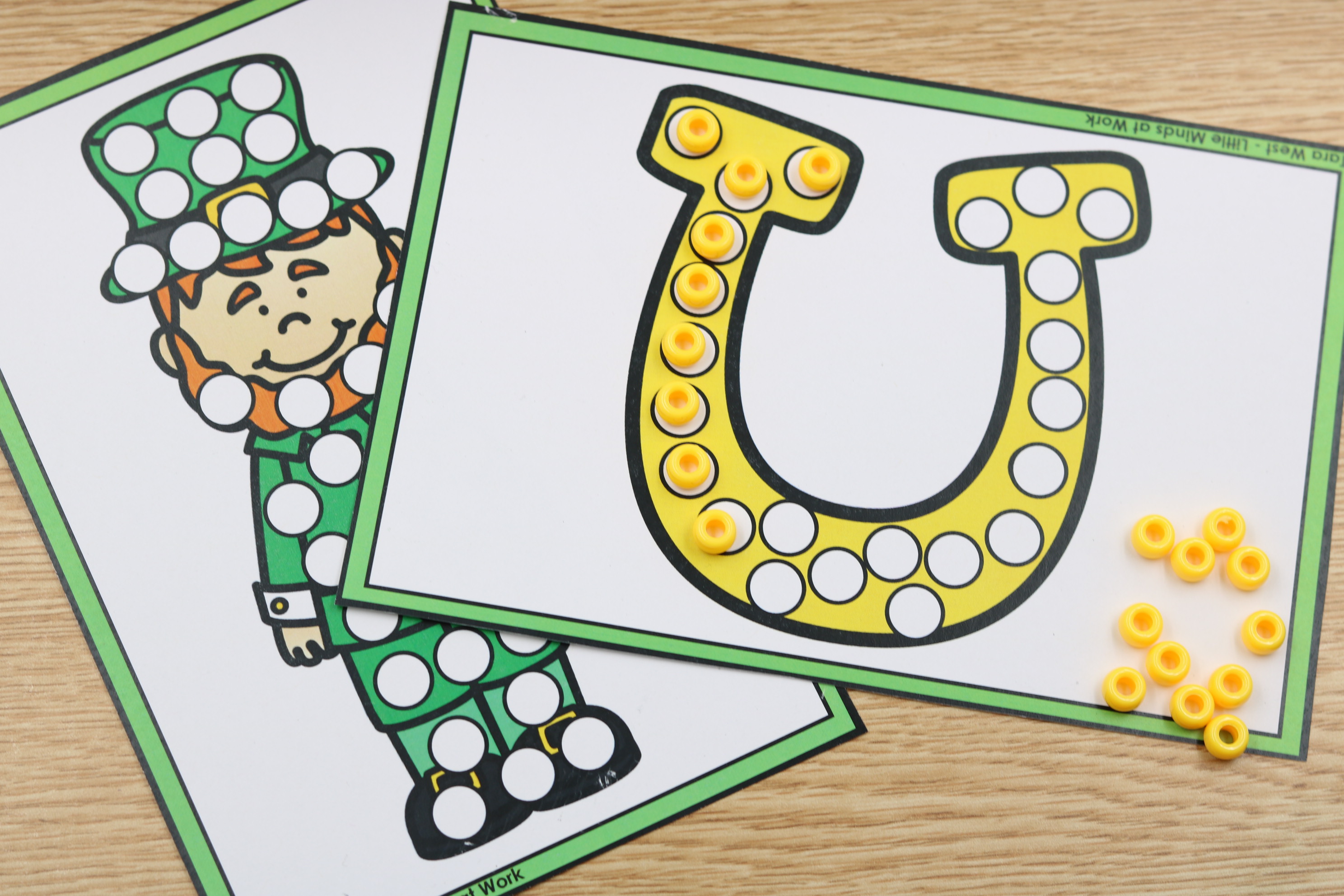 The March themed activities help students strengthen number sense, letter recognition, and early decoding skills while working with beads and string. This activity works well as a focused station, small group practice, or independent fine motor center.