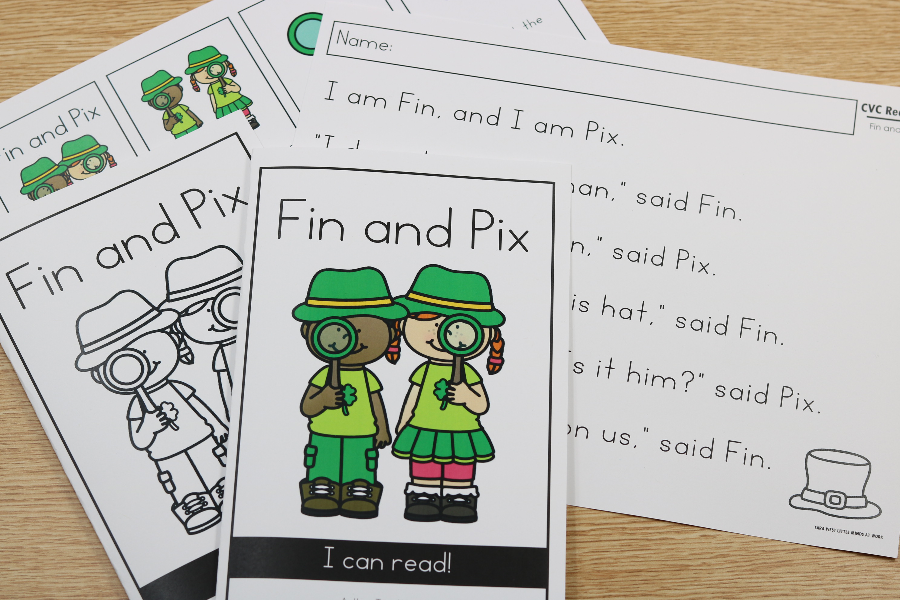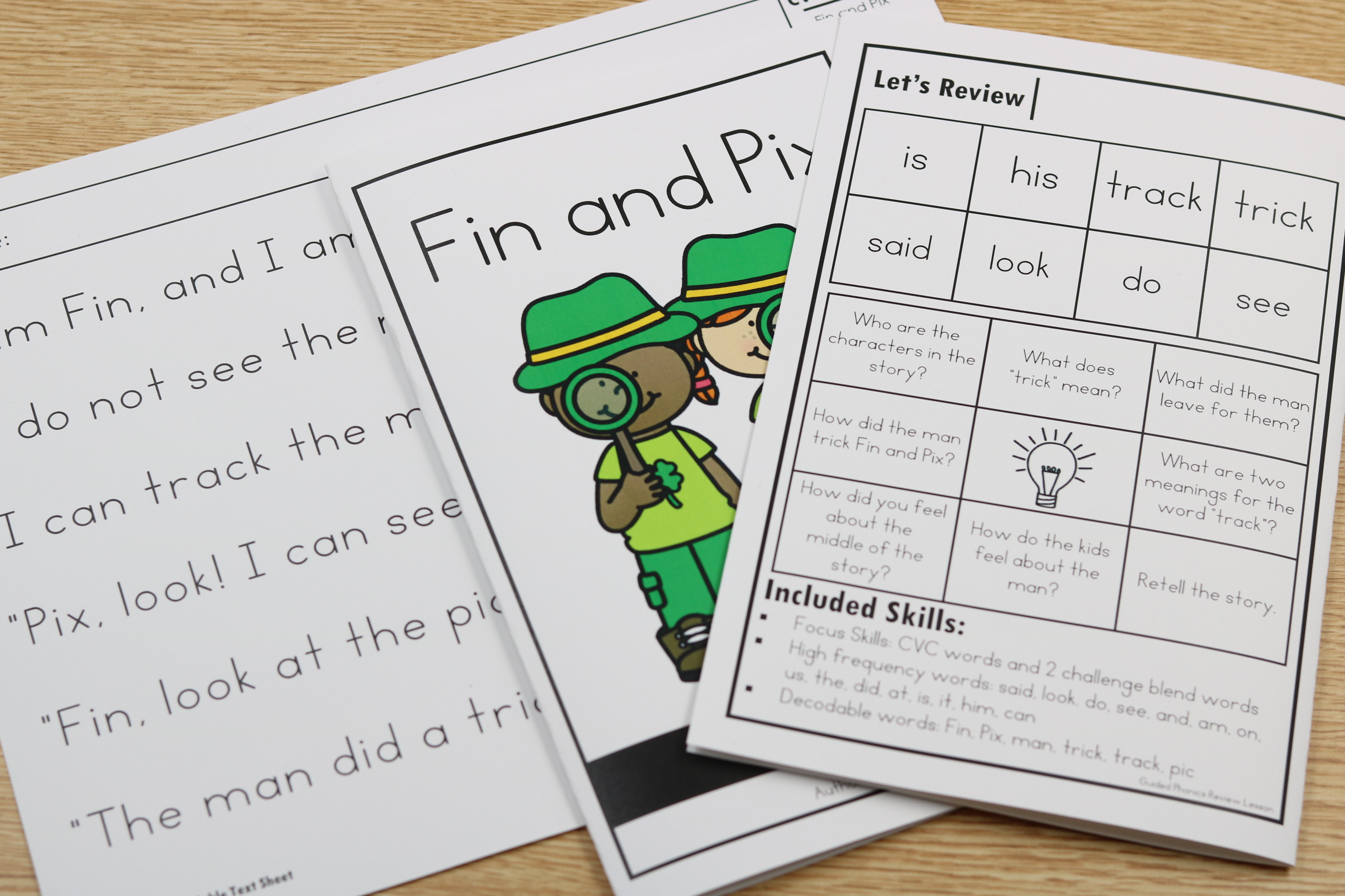 • Fin and Pix fiction decodable book targeting CVC words