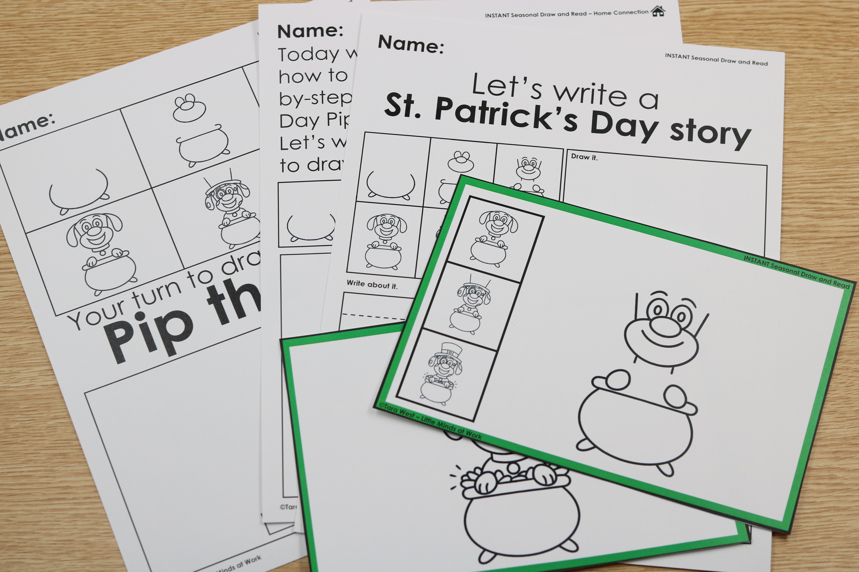 The included St Patrick’s Day themed printables make it easy to integrate art and writing into your lesson plans. After completing their drawing, students can use the provided writing sheets to respond, describe their picture, or create a short story.