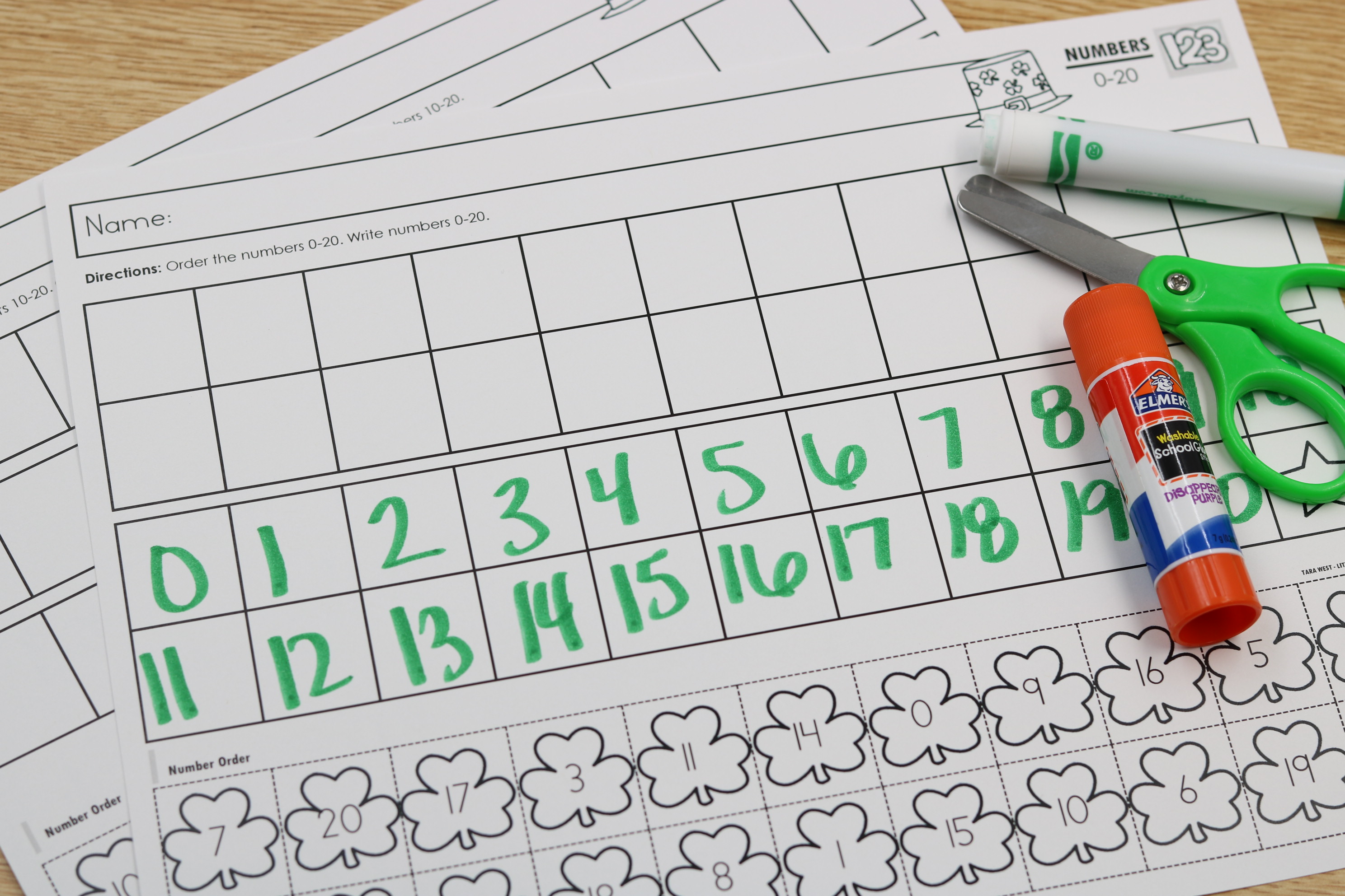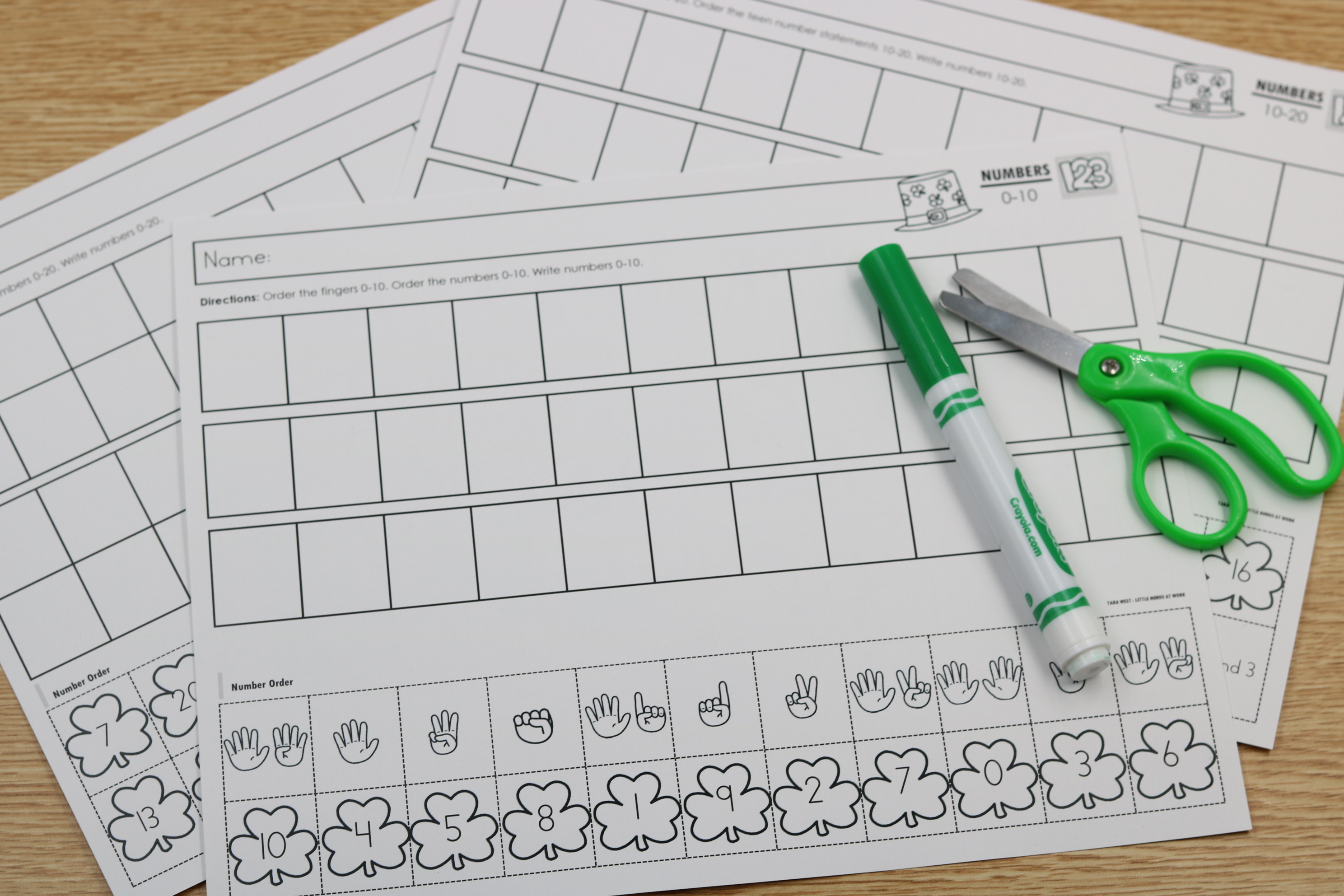 These March Number Ordering Printables provide engaging number sequencing practice with a fun shamrock theme. Students arrange numbers in the correct order to build strong number sense for numbers 1–10 and 1–20.