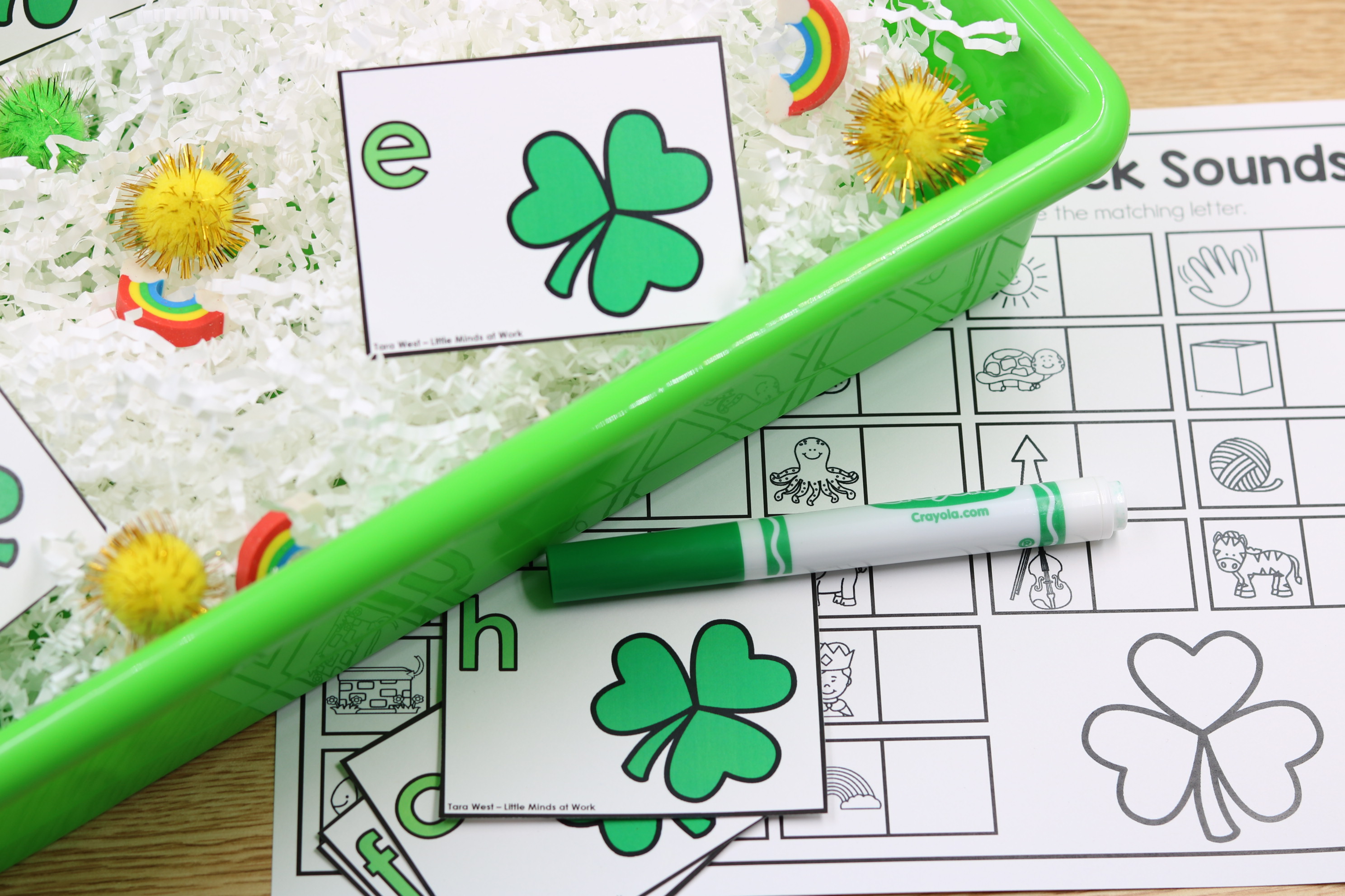 • March themed sensory bin letter cards
