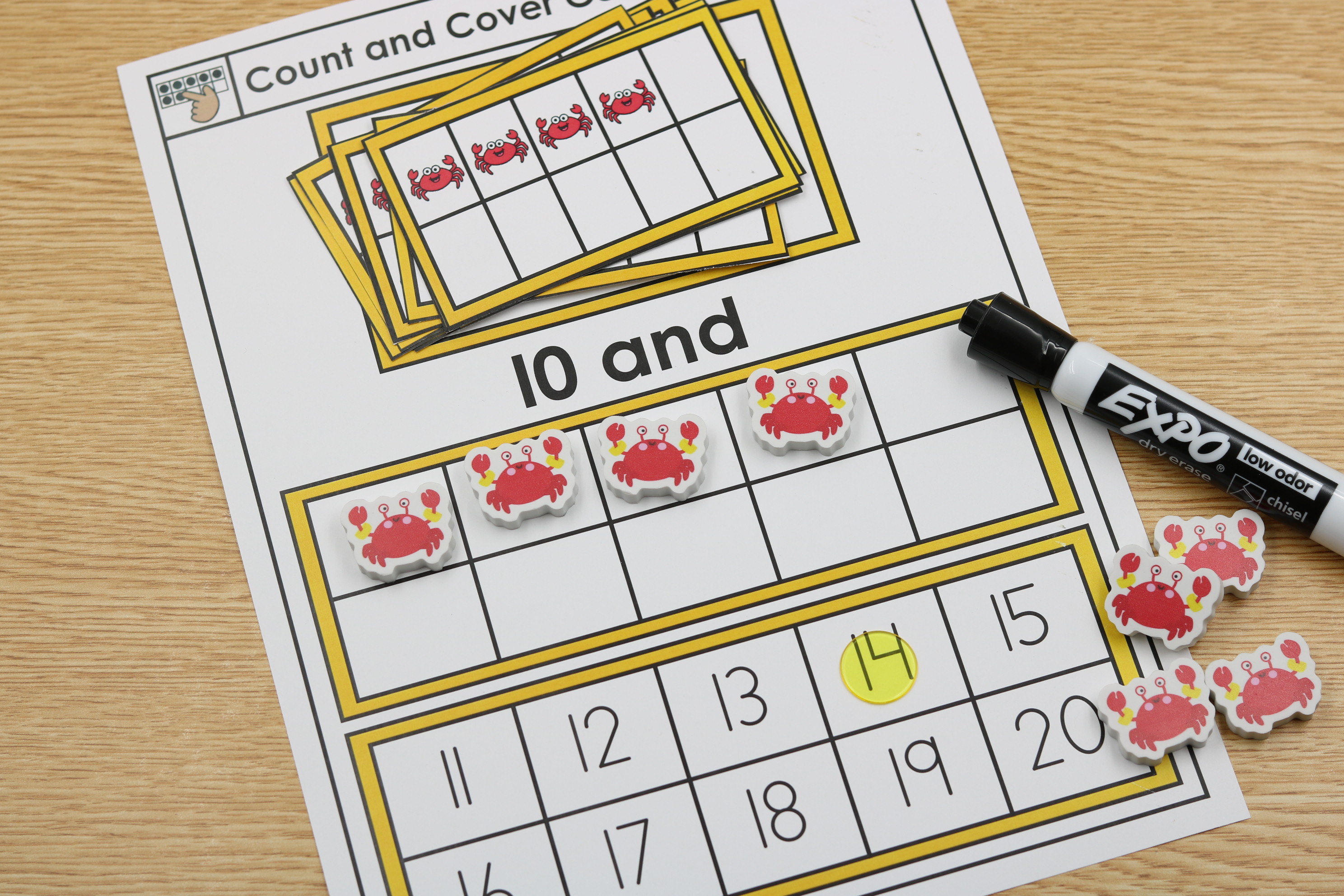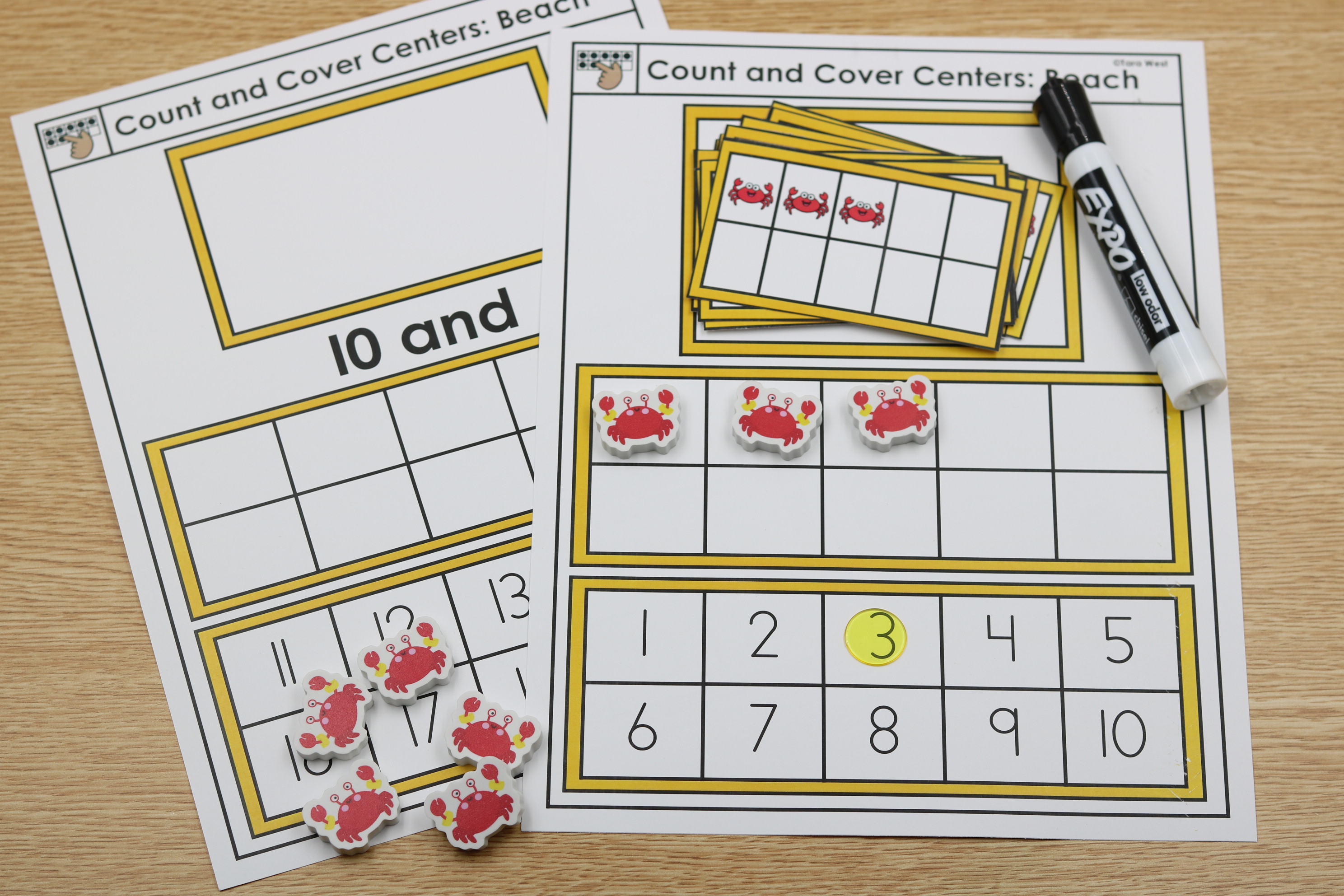 This May count and cover freebie includes crab themed ten frame math center activities for end of year review. Students practice counting and number sense using hands on ten frame mats.