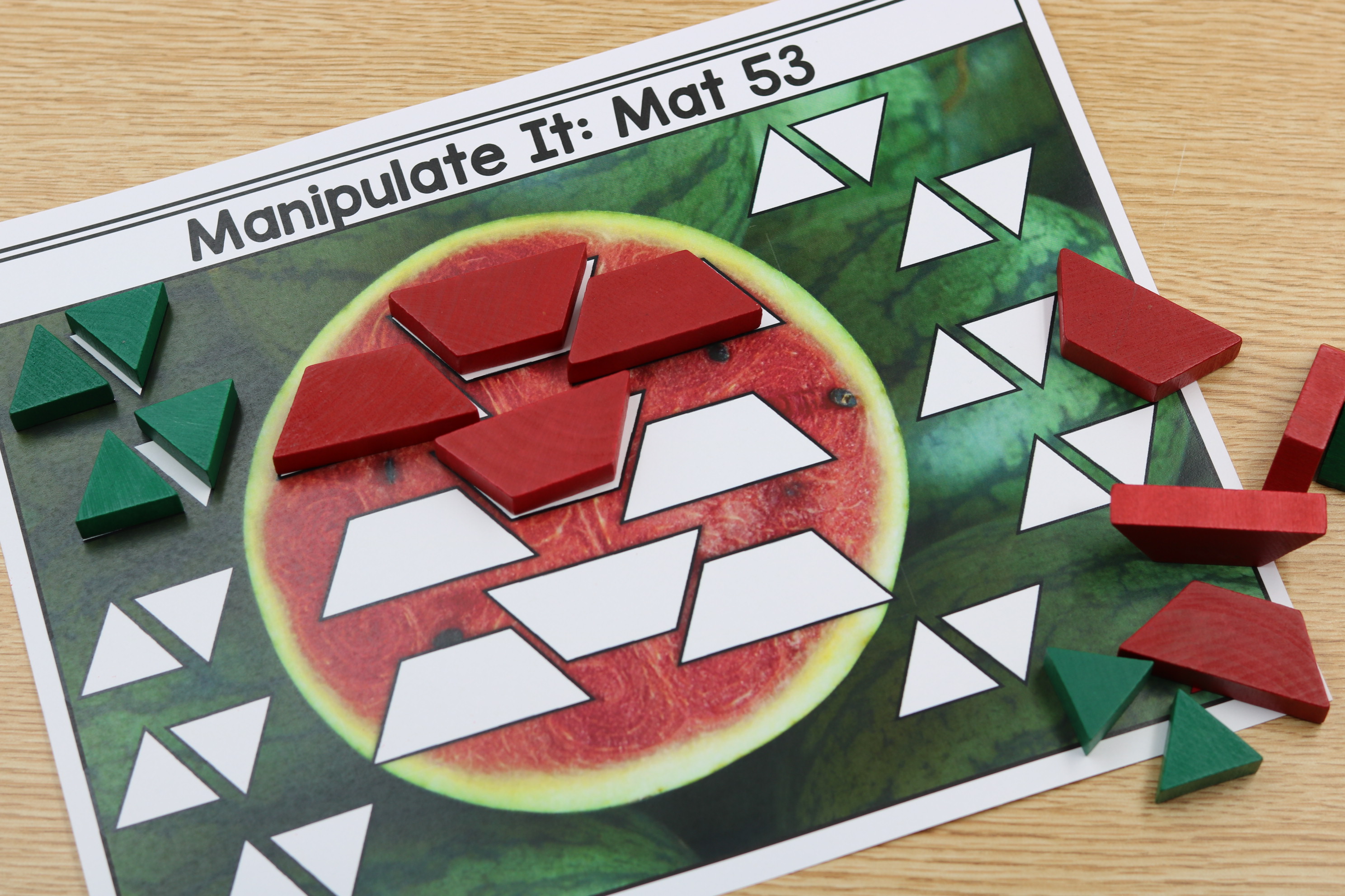 Students use manipulatives such as pattern blocks, cubes, fuzzy pom poms, and more to complete each task. These activities support exploration while giving students opportunities to build and create using structured directions.