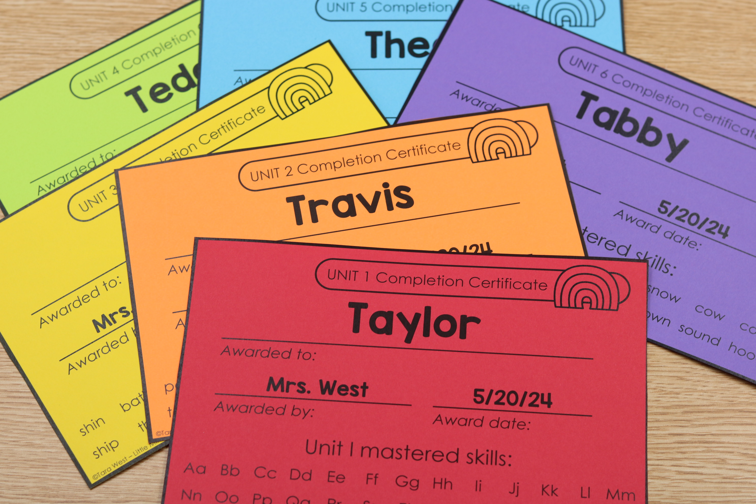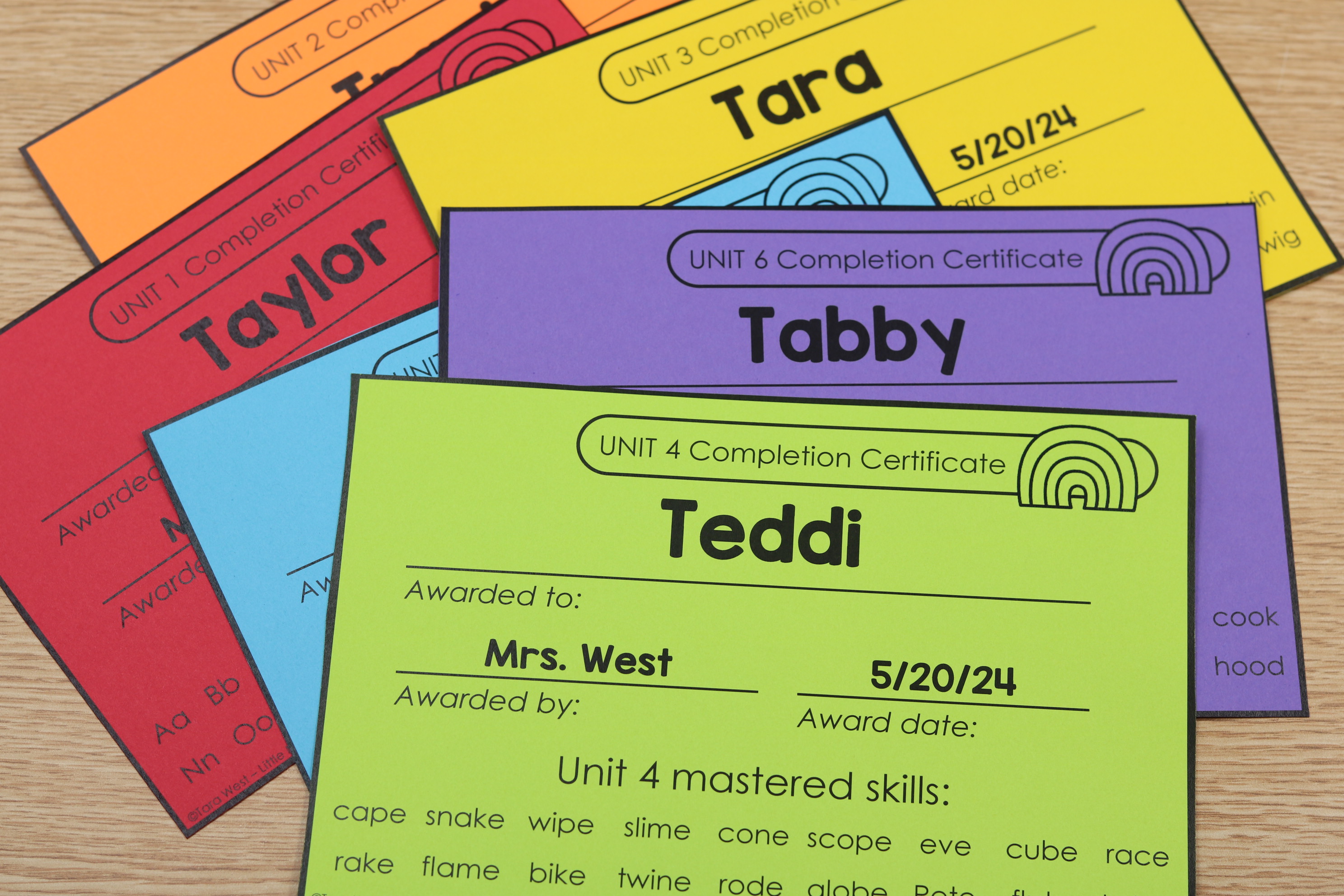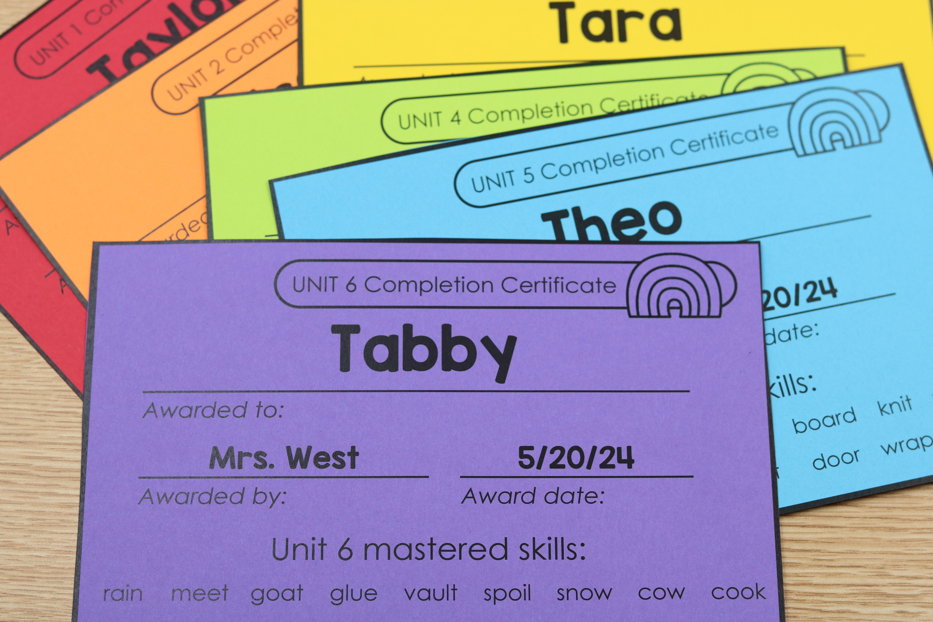 The certificates also include unit based awards, allowing you to recognize progress across structured phonics instruction.