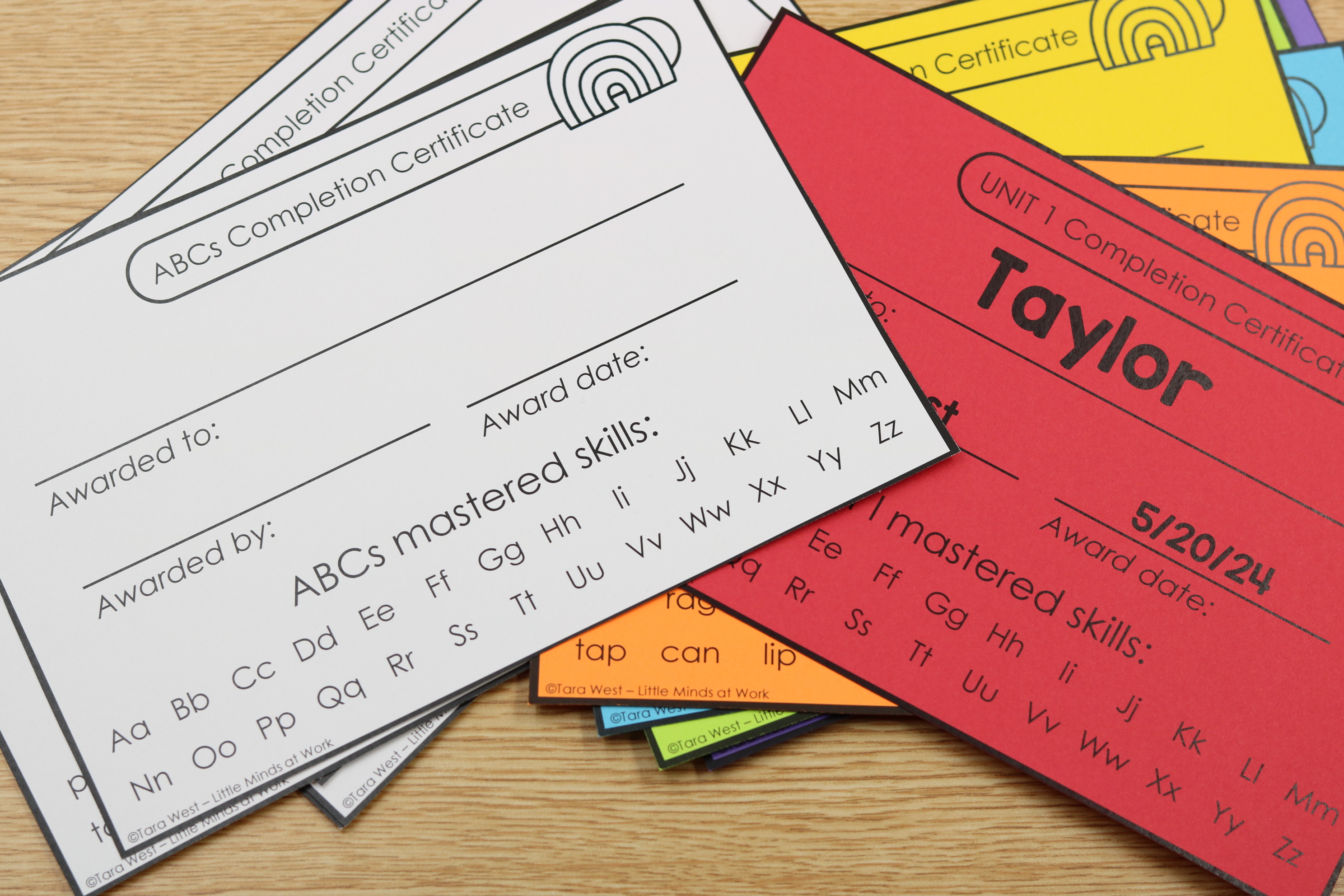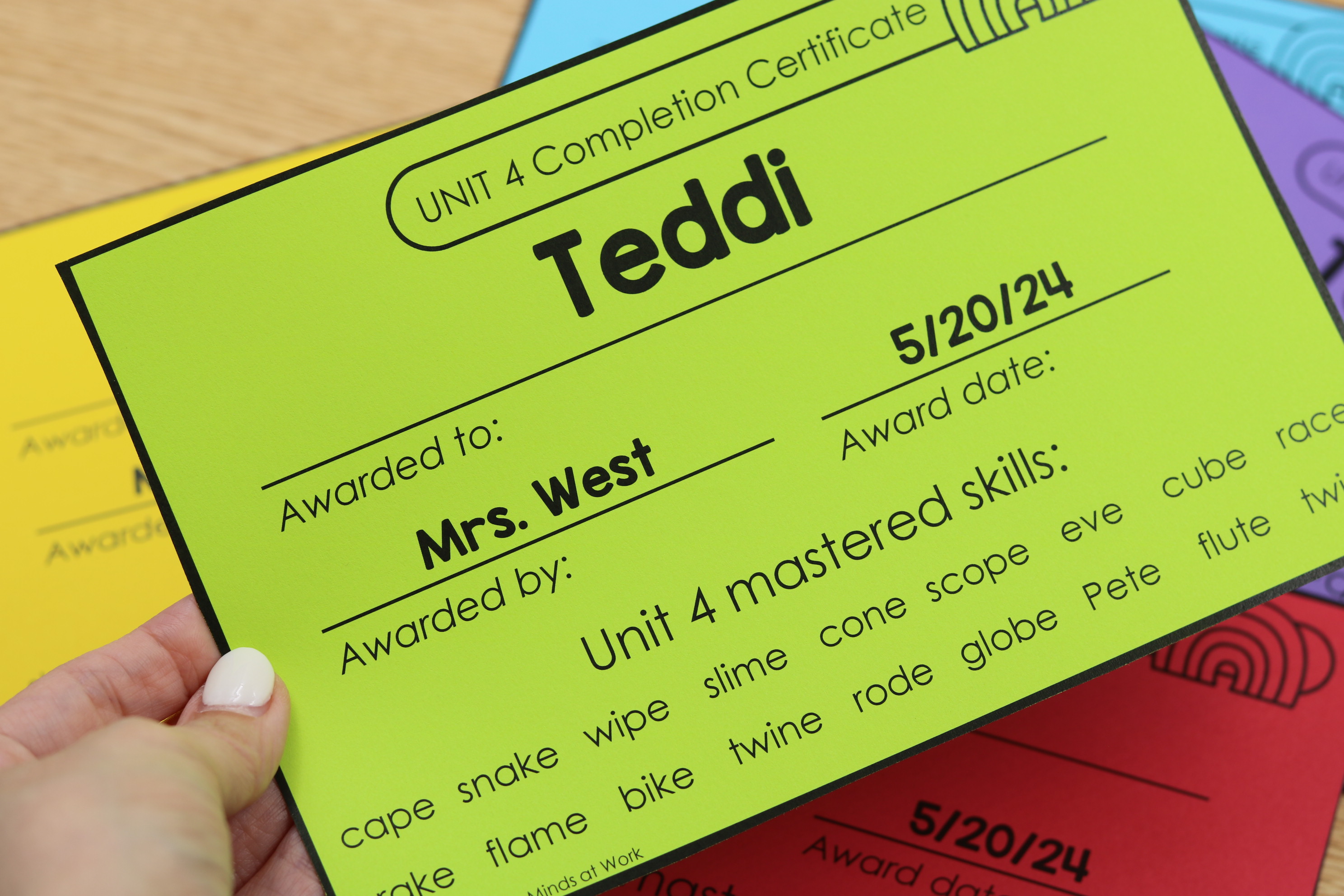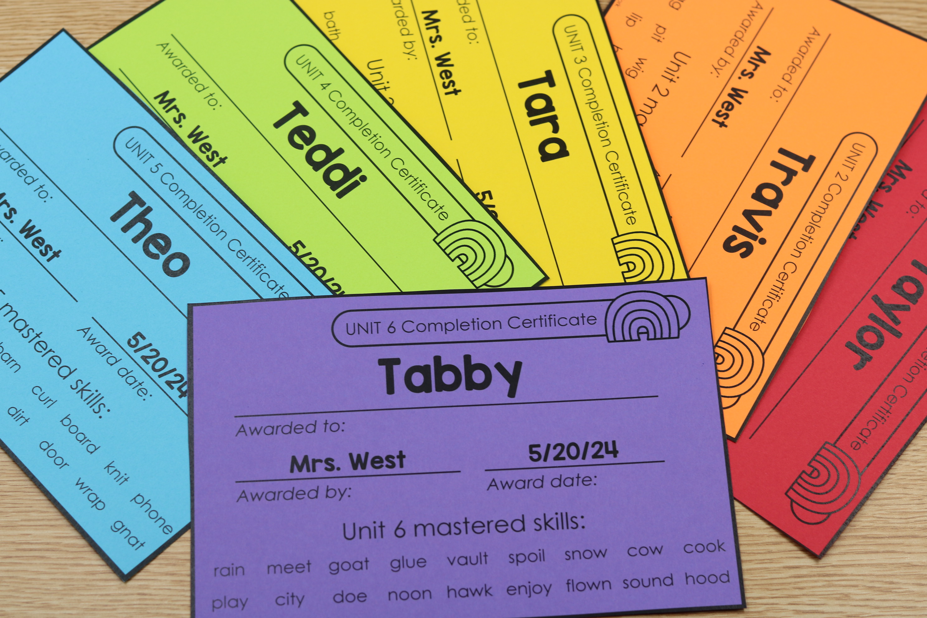 The certificates also include unit based awards, allowing you to recognize progress across structured phonics instruction.