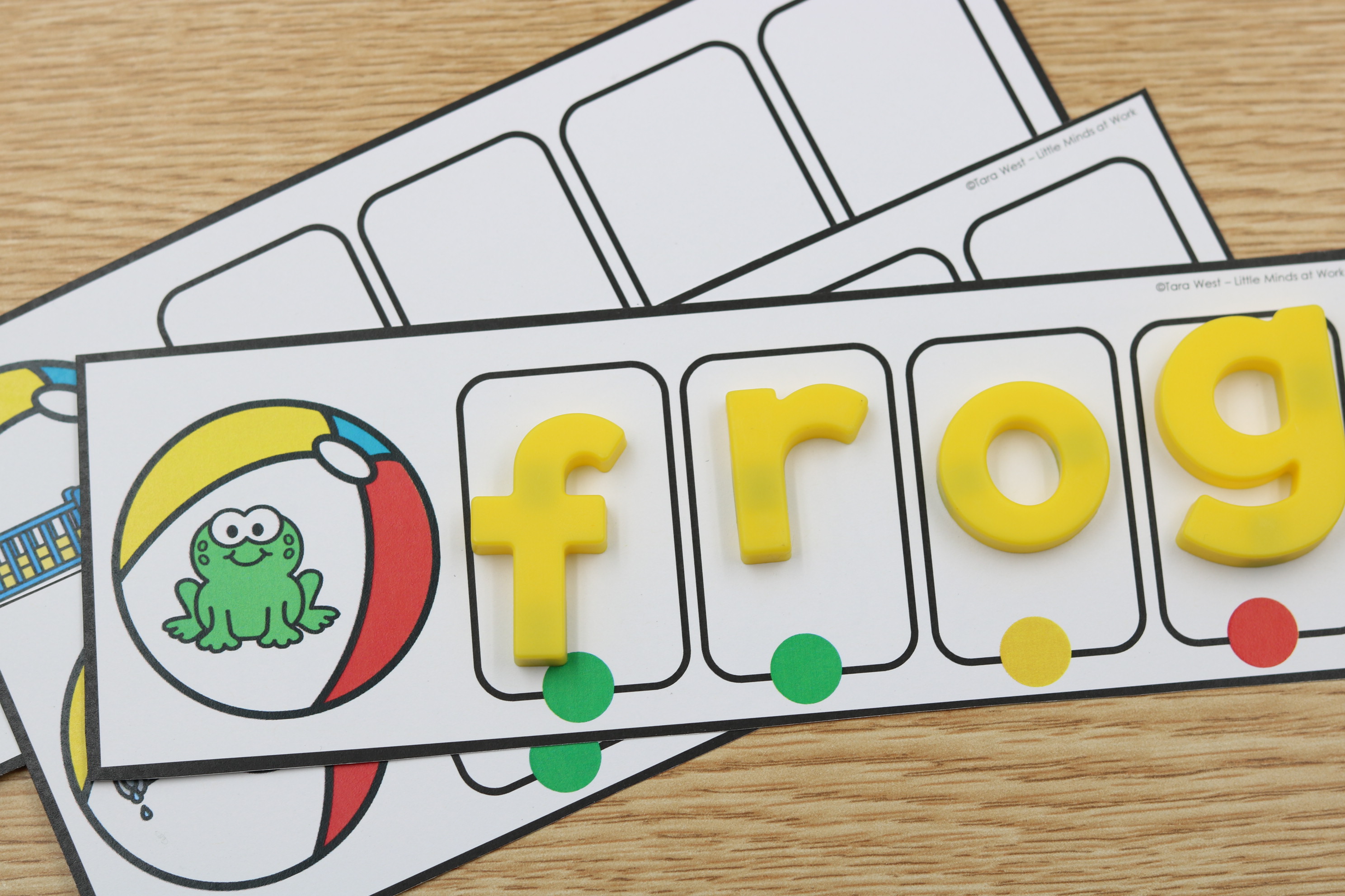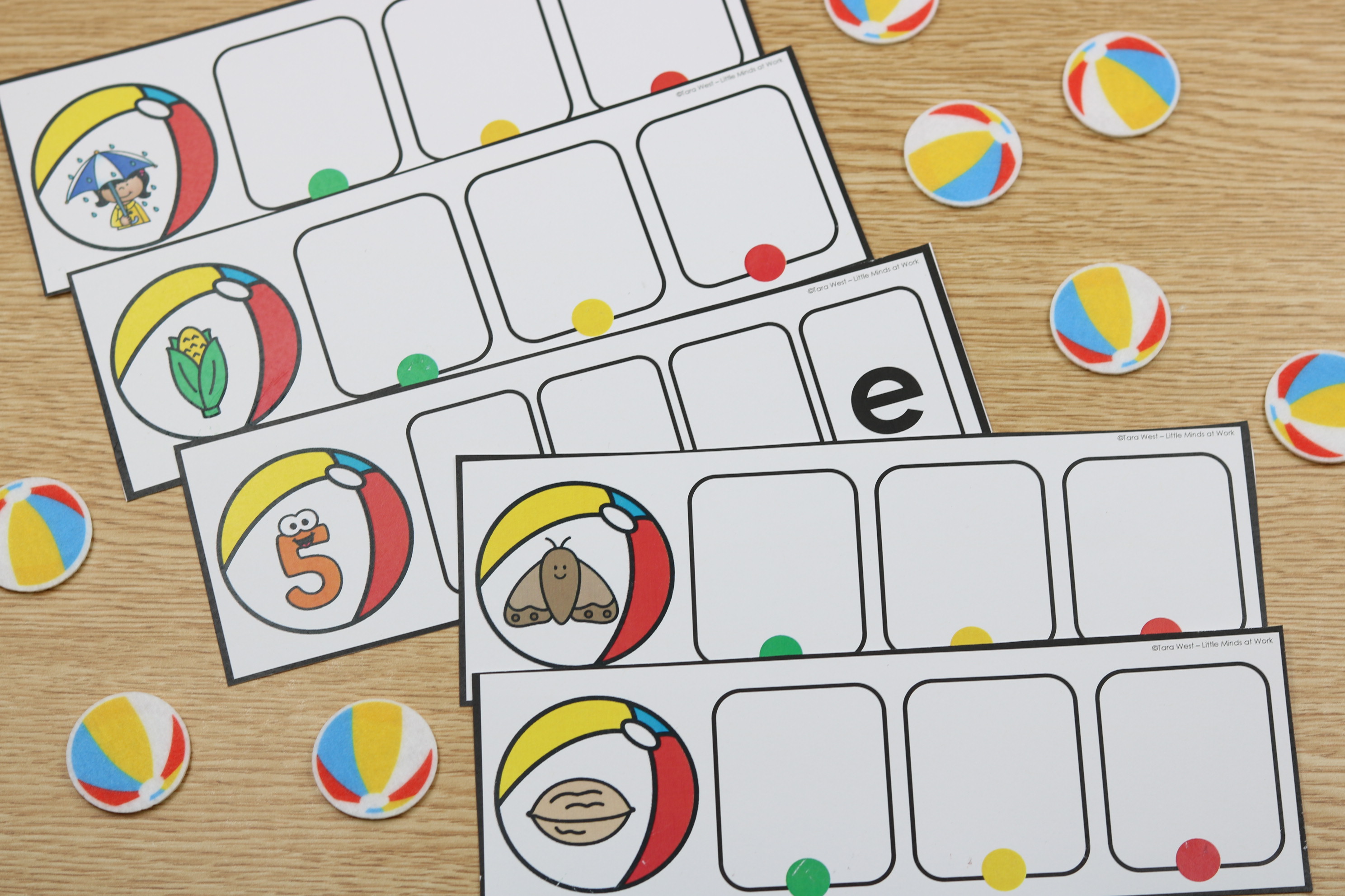 This May summer writing strips freebie includes word builder strips for phonics practice. Students map sounds and build words using hands on Science of Reading routines.