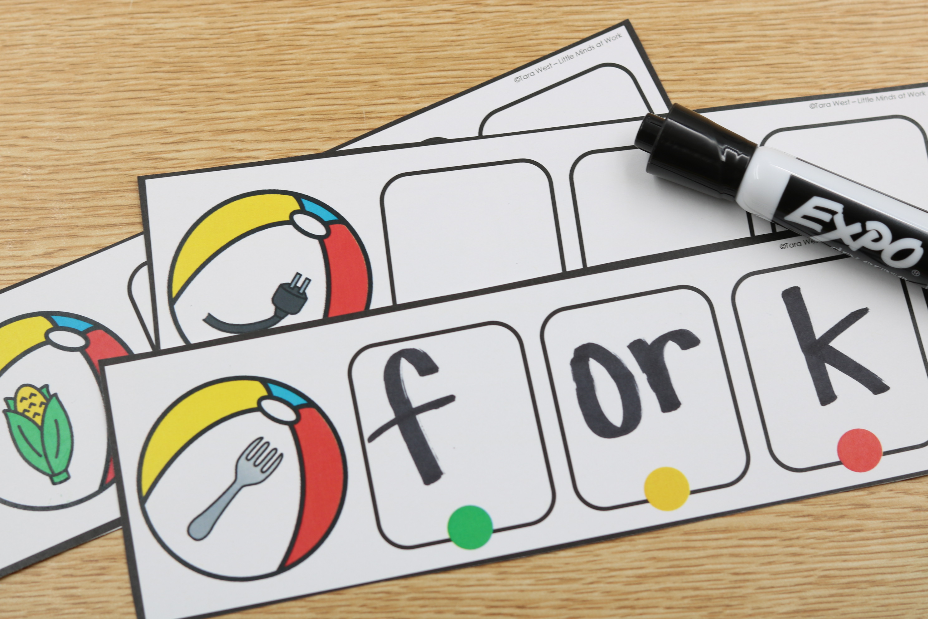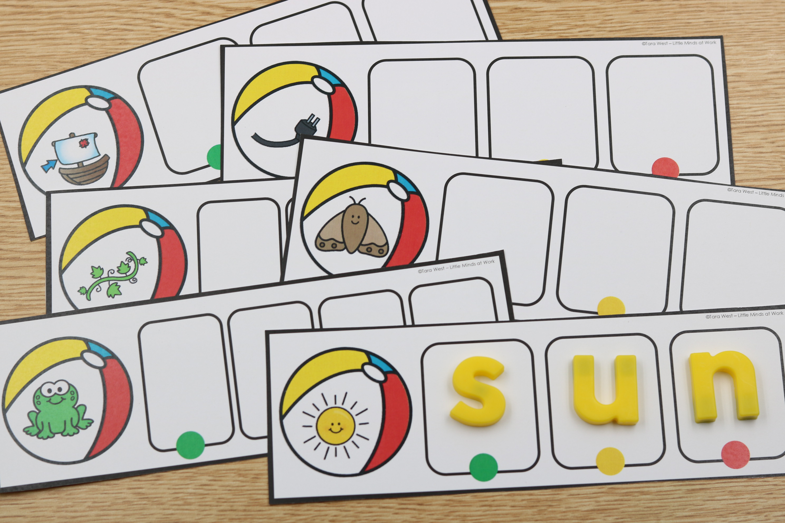 This May summer writing strips freebie includes hands on writing strips and word builder strips designed to strengthen phonics skills through structured routines. Students pull a strip, say the word, count the sounds, map each phoneme, and write the matching word.