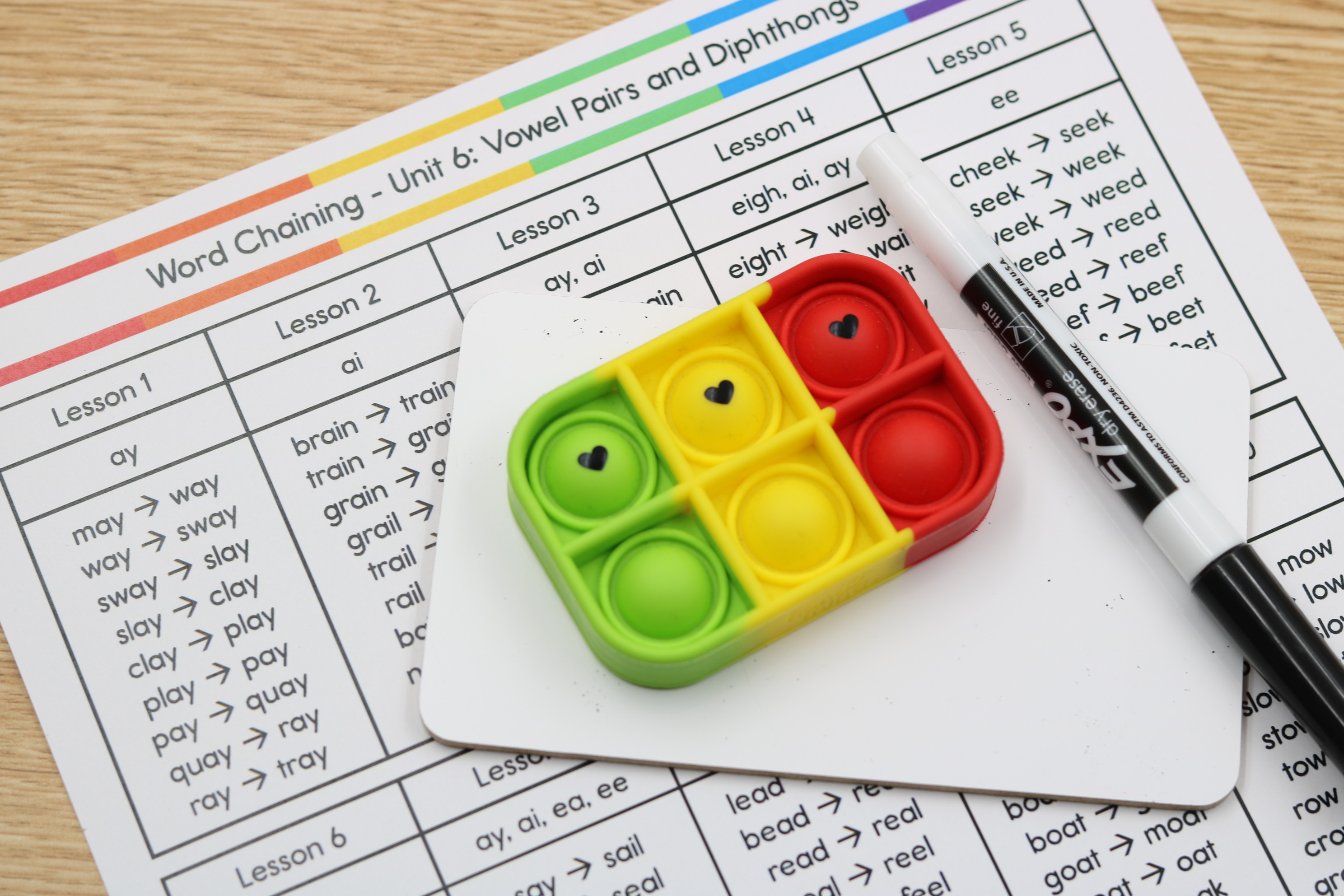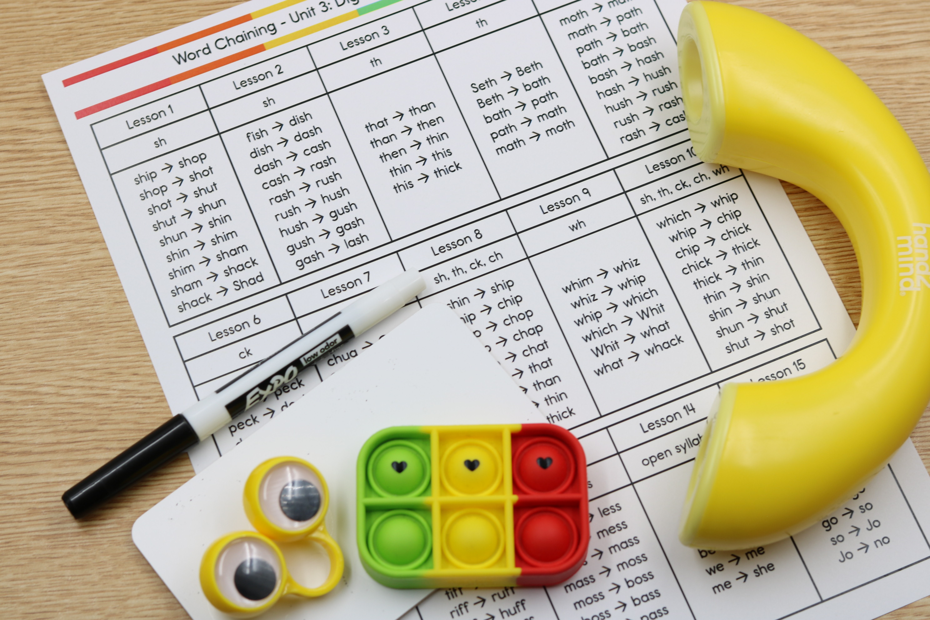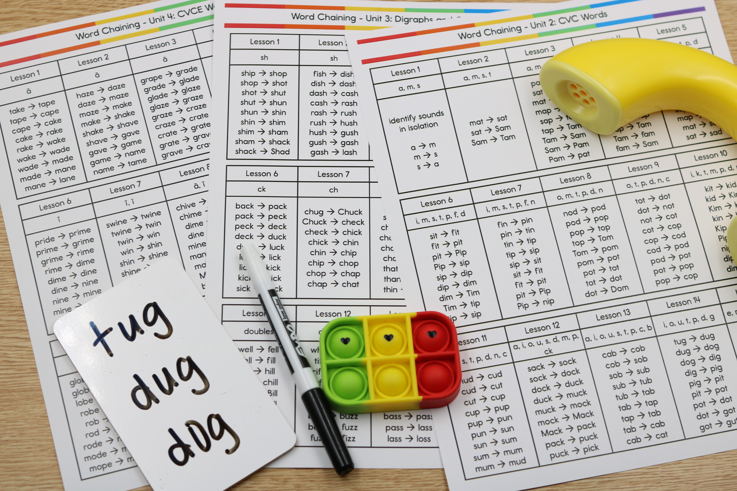 With 125 word chaining drill sets included, students practice reading words that change by just one sound at a time. This structured progression helps students focus on how sounds shift within words, strengthening both decoding and encoding skills. For example, students move through chains like mat → sat → sap → tap, reinforcing sound-by-sound changes.