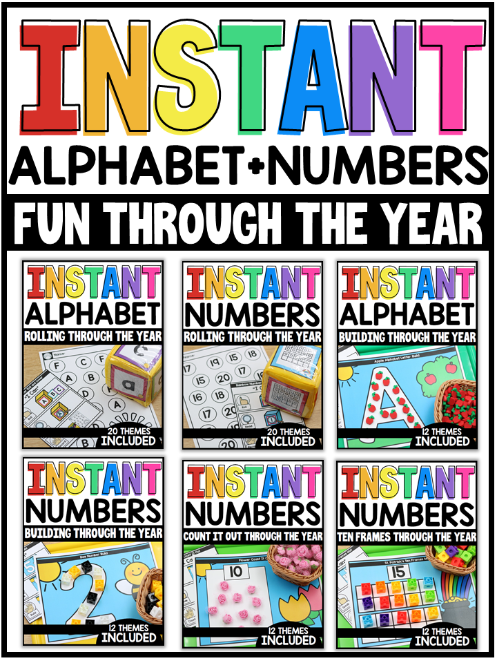 My Rolling Through the Year packets are offered for both the alphabet and numbers to 20! These packets both offer twenty themes. There is also opportunity to differentiate the packet through the year! For example, you can have students roll the capital letter cube, but respond on the lowercase sheet. Both packets offer 2 versions of recording sheets [capital and lowercase for the alphabet, numbers and ten frames for math]. The packets only require that you have a differentiated instructional cube! I have the Carson Dellosa set!
